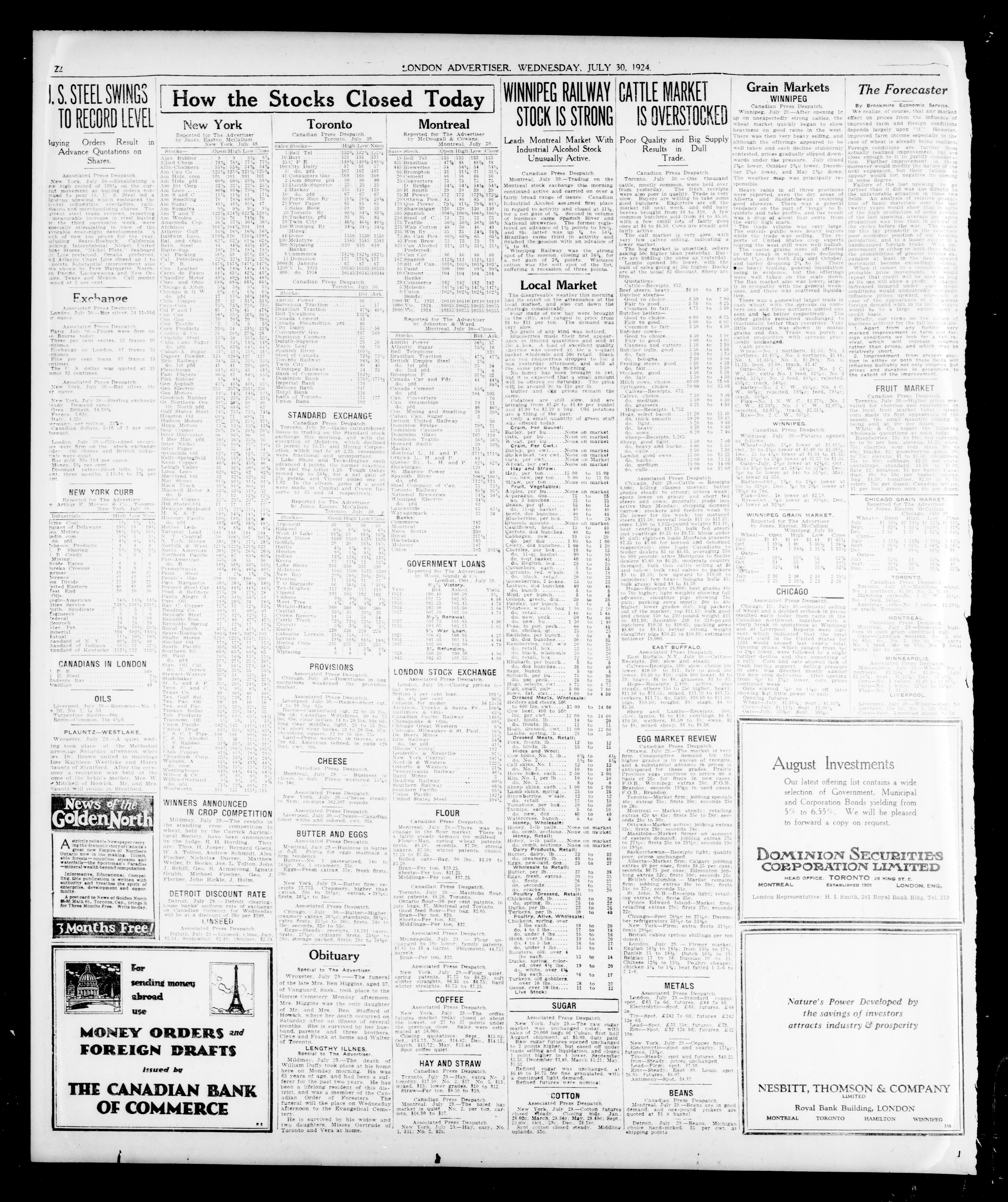 London Evening Advertiser. : London evening advertiser : 61st Year, No. 24028 (July 30, 1924)