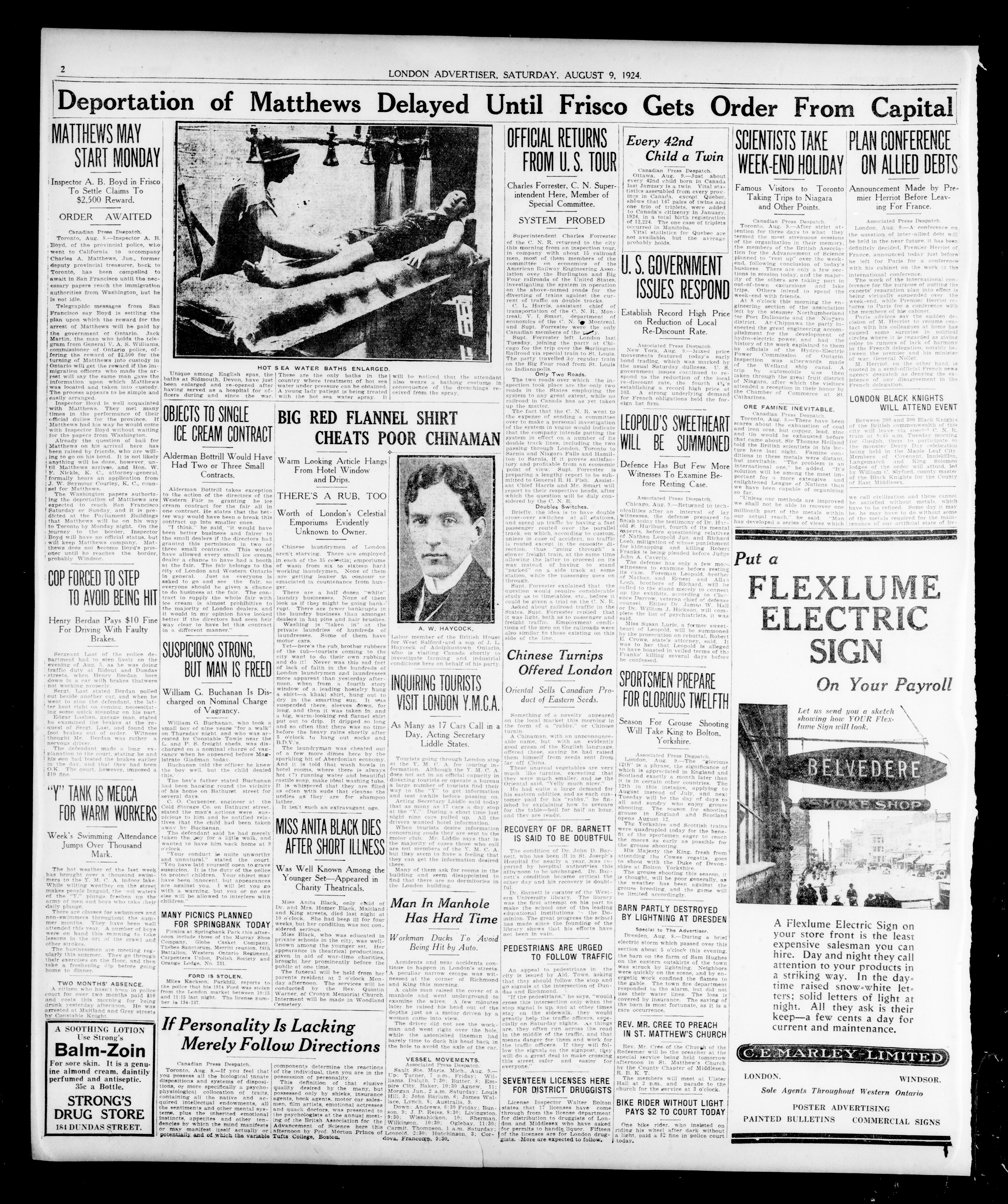 - London evening advertiser : 61st Year, No. 24037 (August 9, 1924)