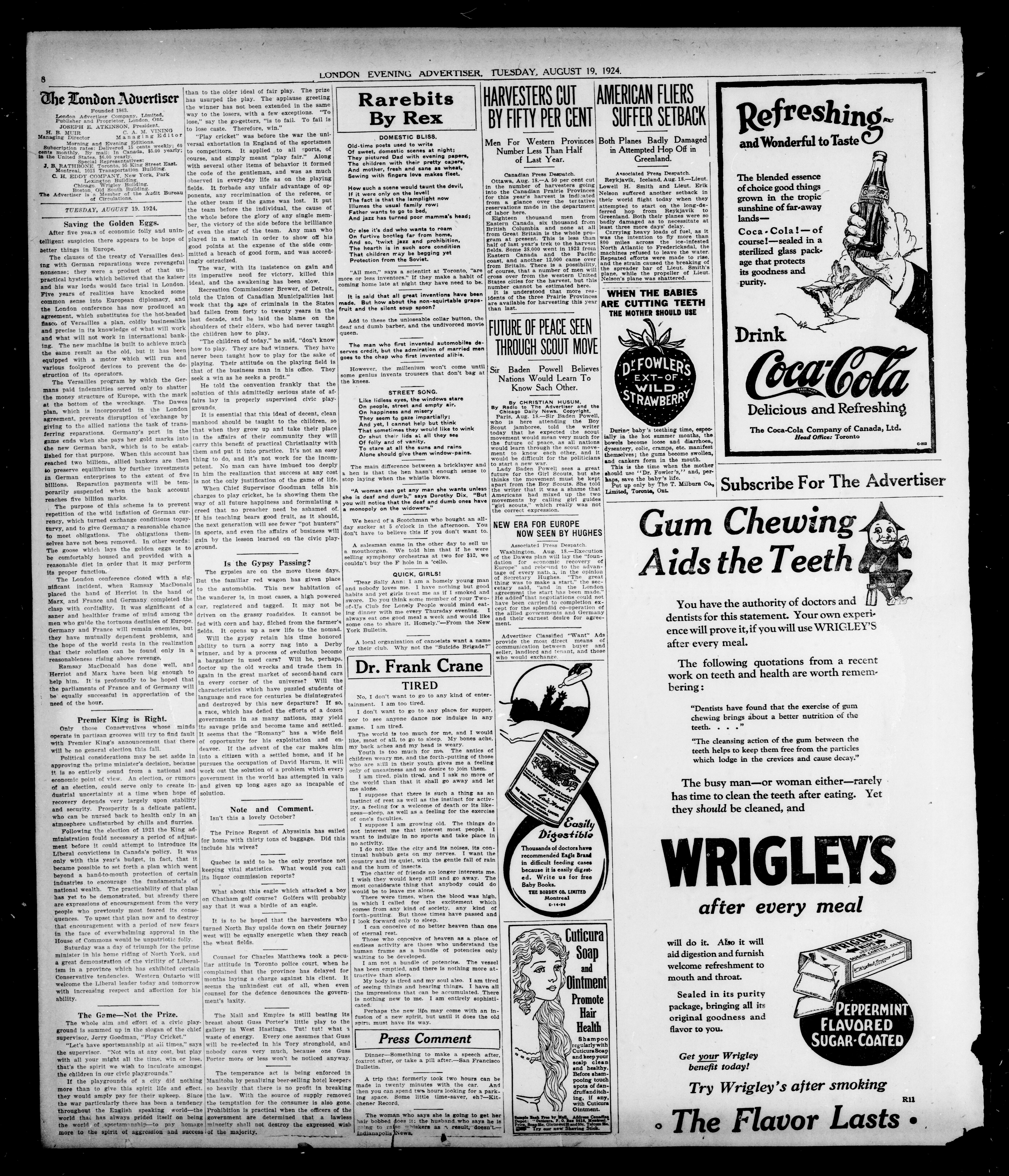 London evening advertiser : 61st Year, No. 24045 (August 19, 1924)