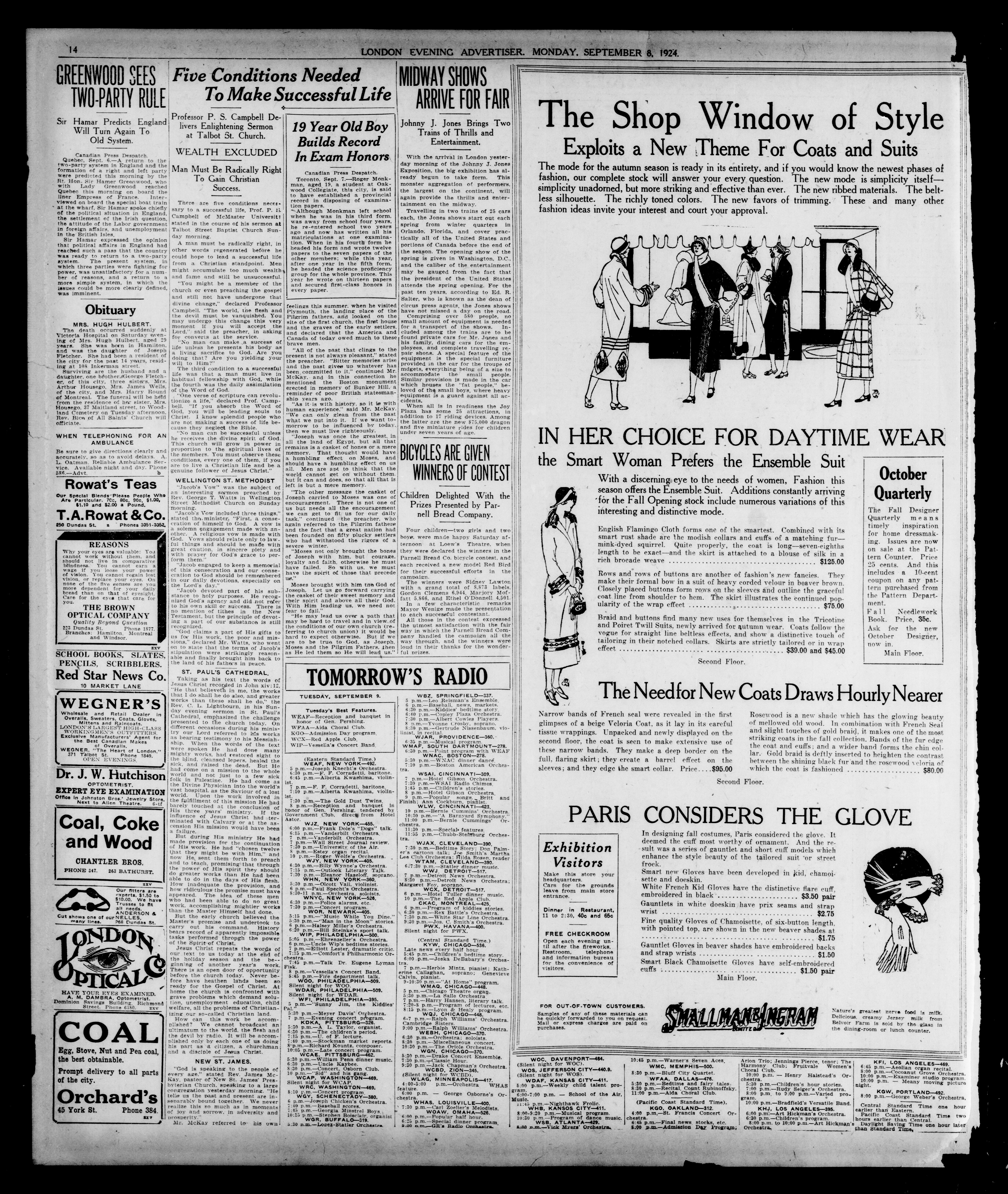 London Evening Advertiser. : London evening advertiser : 61st Year, No. 24062 (September 8, 1924)