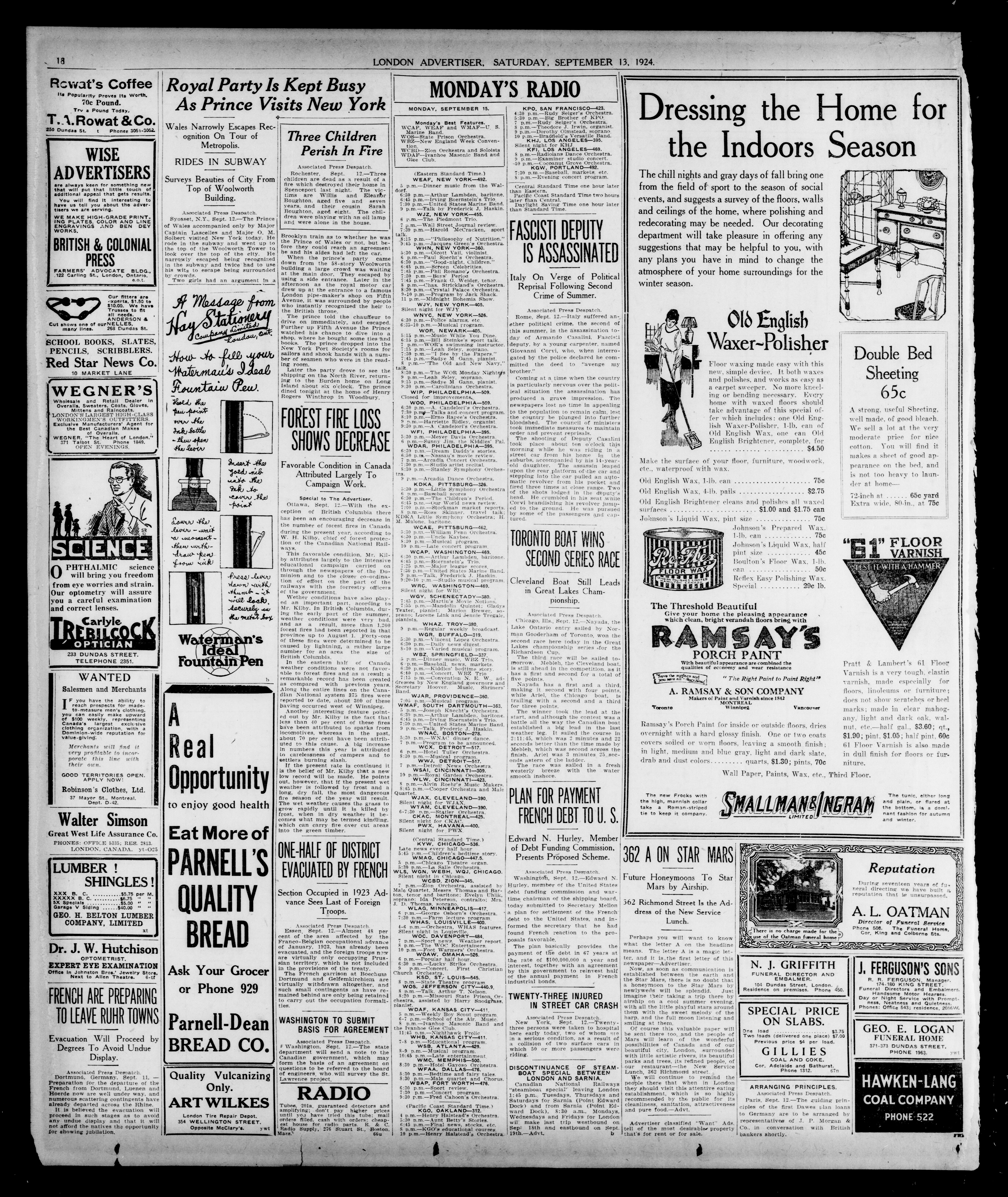 London Evening Advertiser. : London evening advertiser : 61st Year, No. 24067 (September 13, 1924)