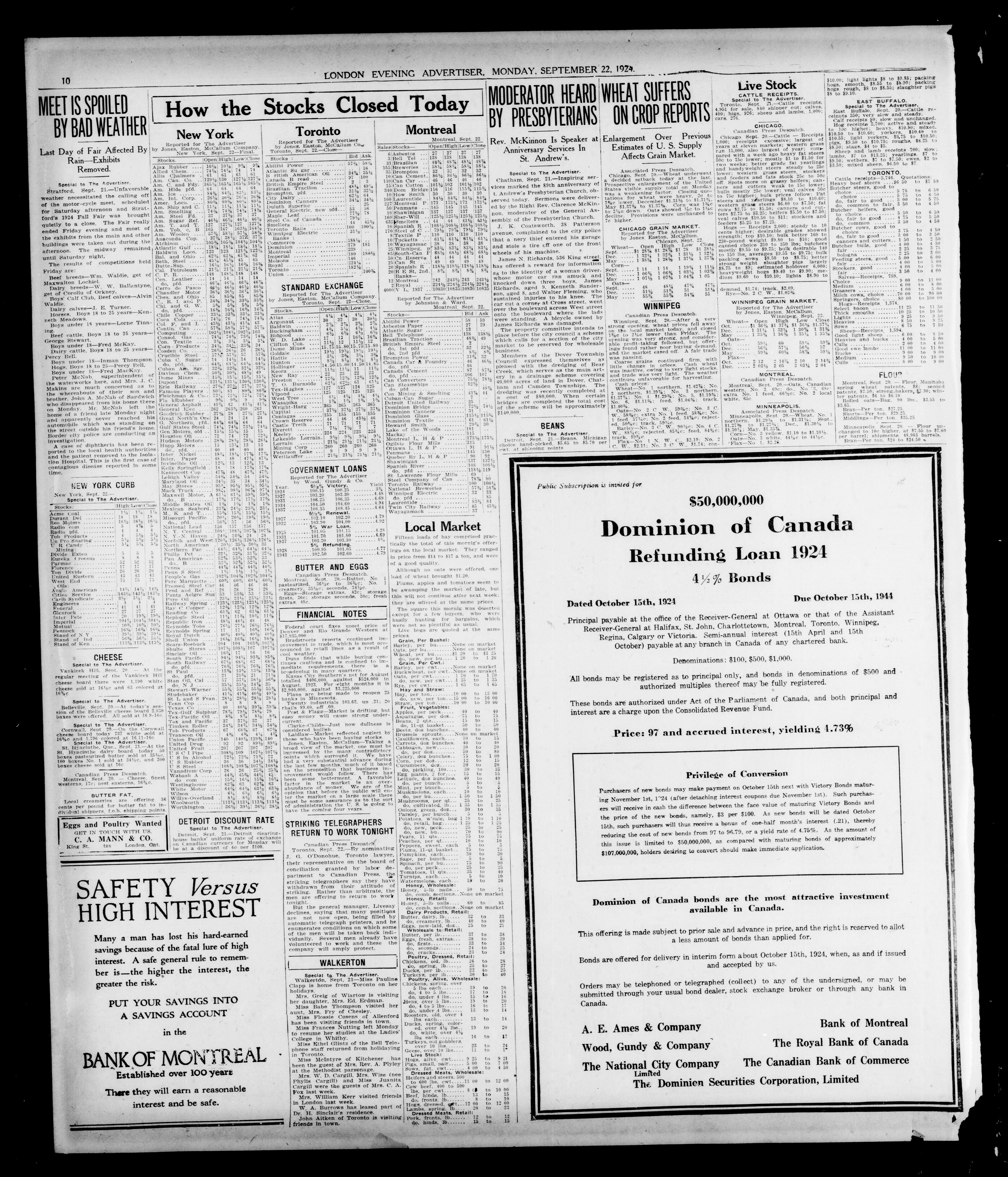 London Evening Advertiser. : London evening advertiser : 61st Year, No. 24074 (September 22, 1924)