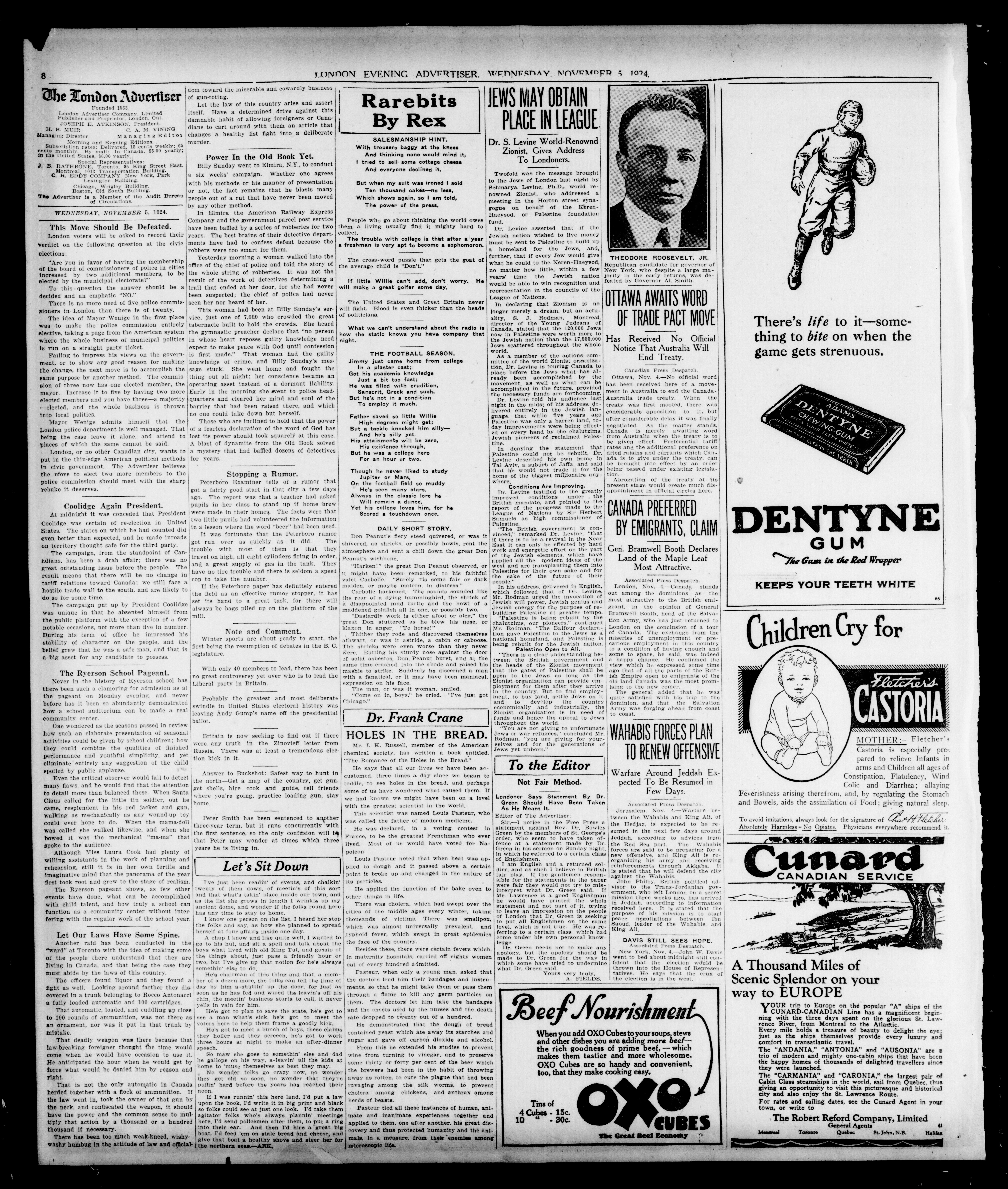London Evening Advertiser. : London evening advertiser : 61st Year, No. 24112 (November 5, 1924)