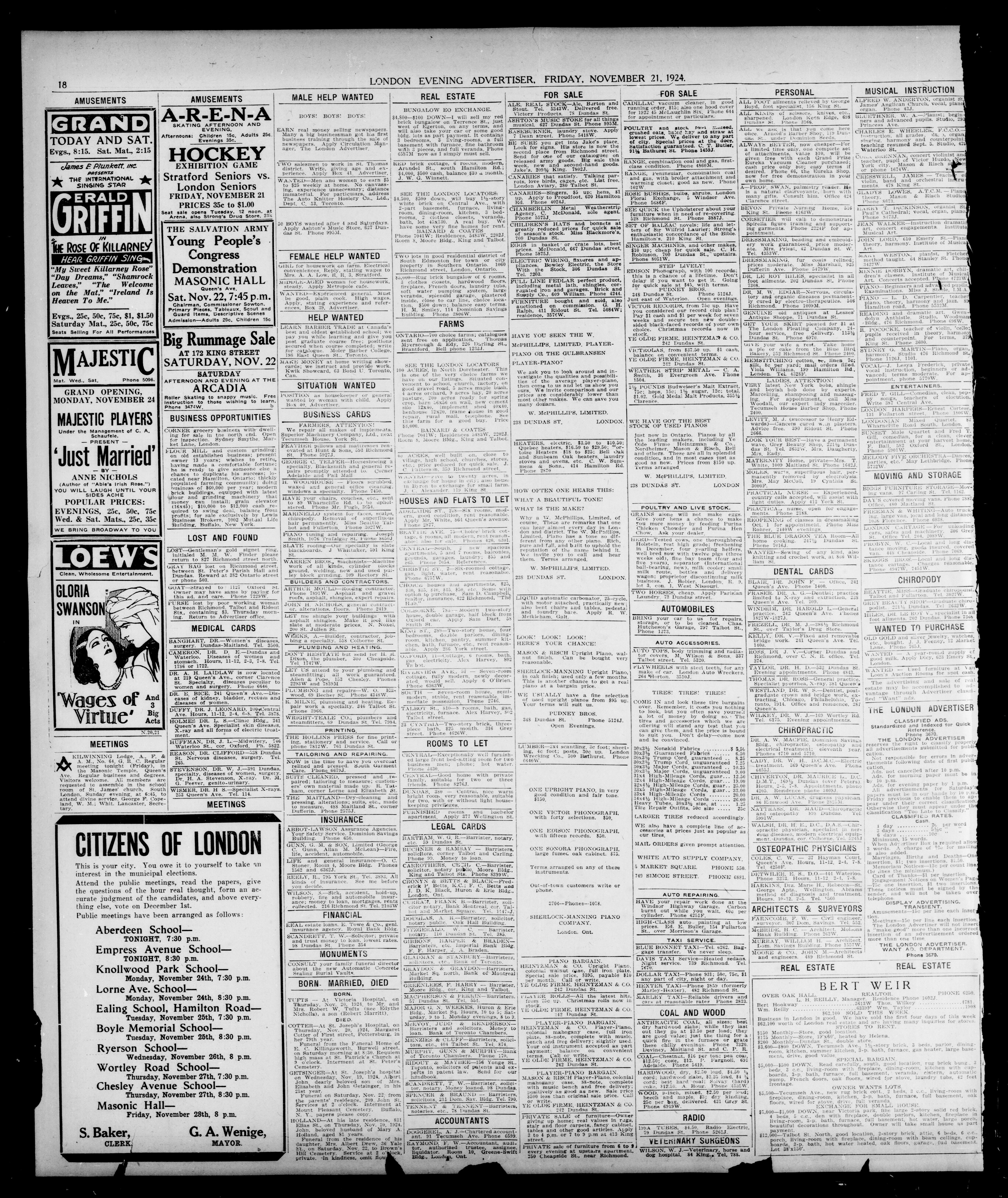 London Evening Advertiser. : London evening advertiser : 61st Year, No. 24126 (November 21, 1924)