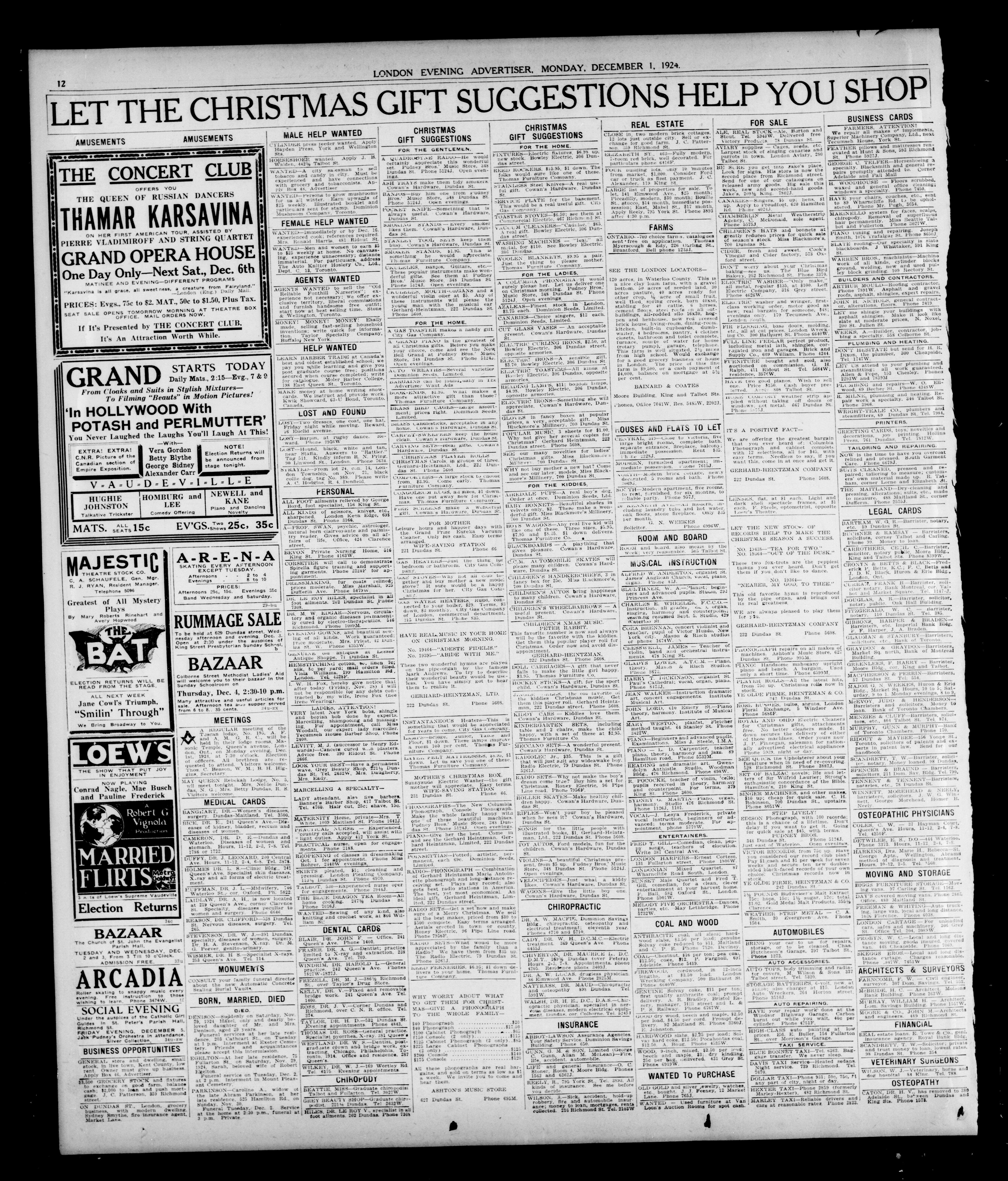 - London evening advertiser : 61st Year, No. 24134 (December 1, 1924)
