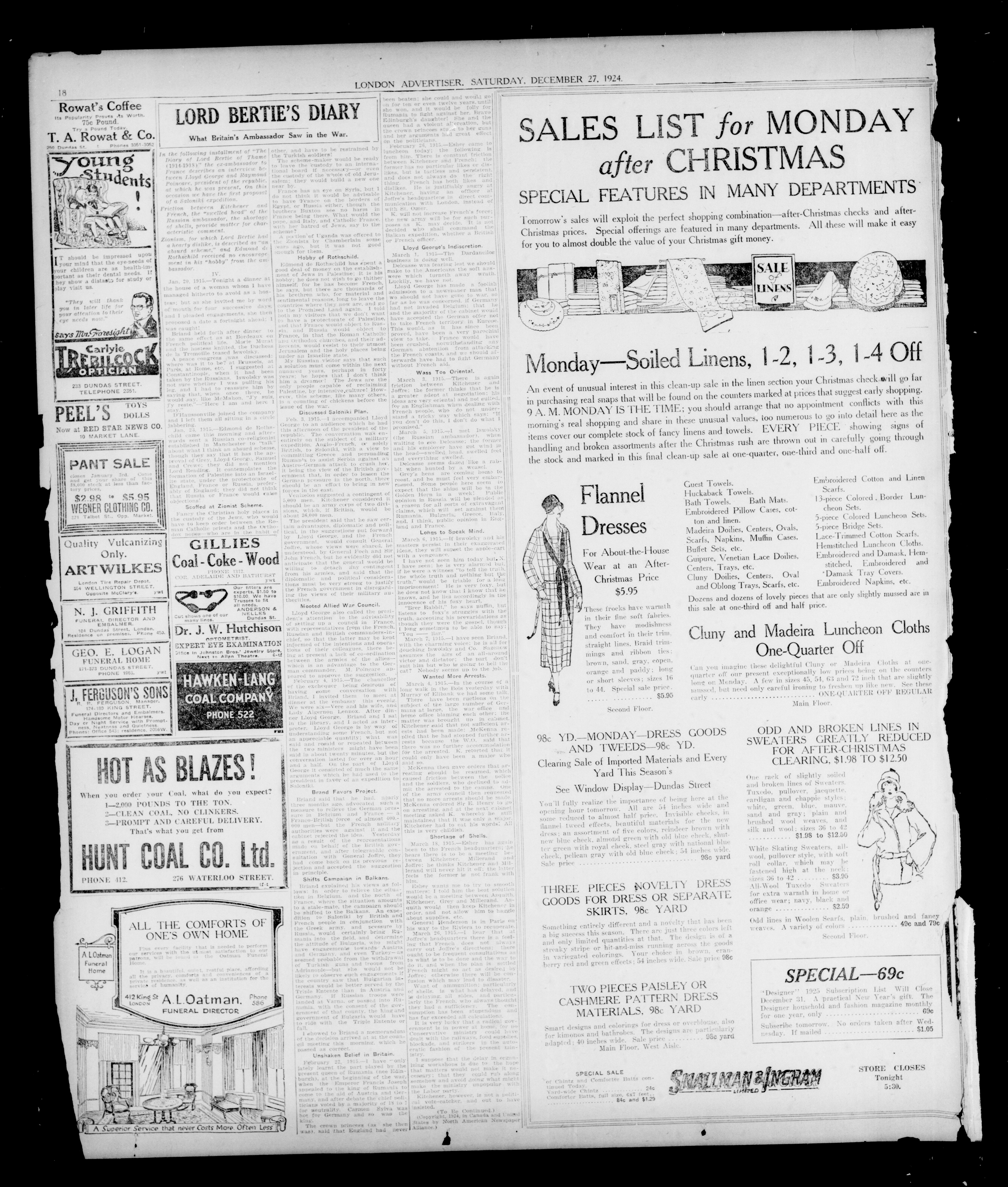 London Evening Advertiser. : London evening advertiser : 61st Year, No. 24157 (December 27, 1924)