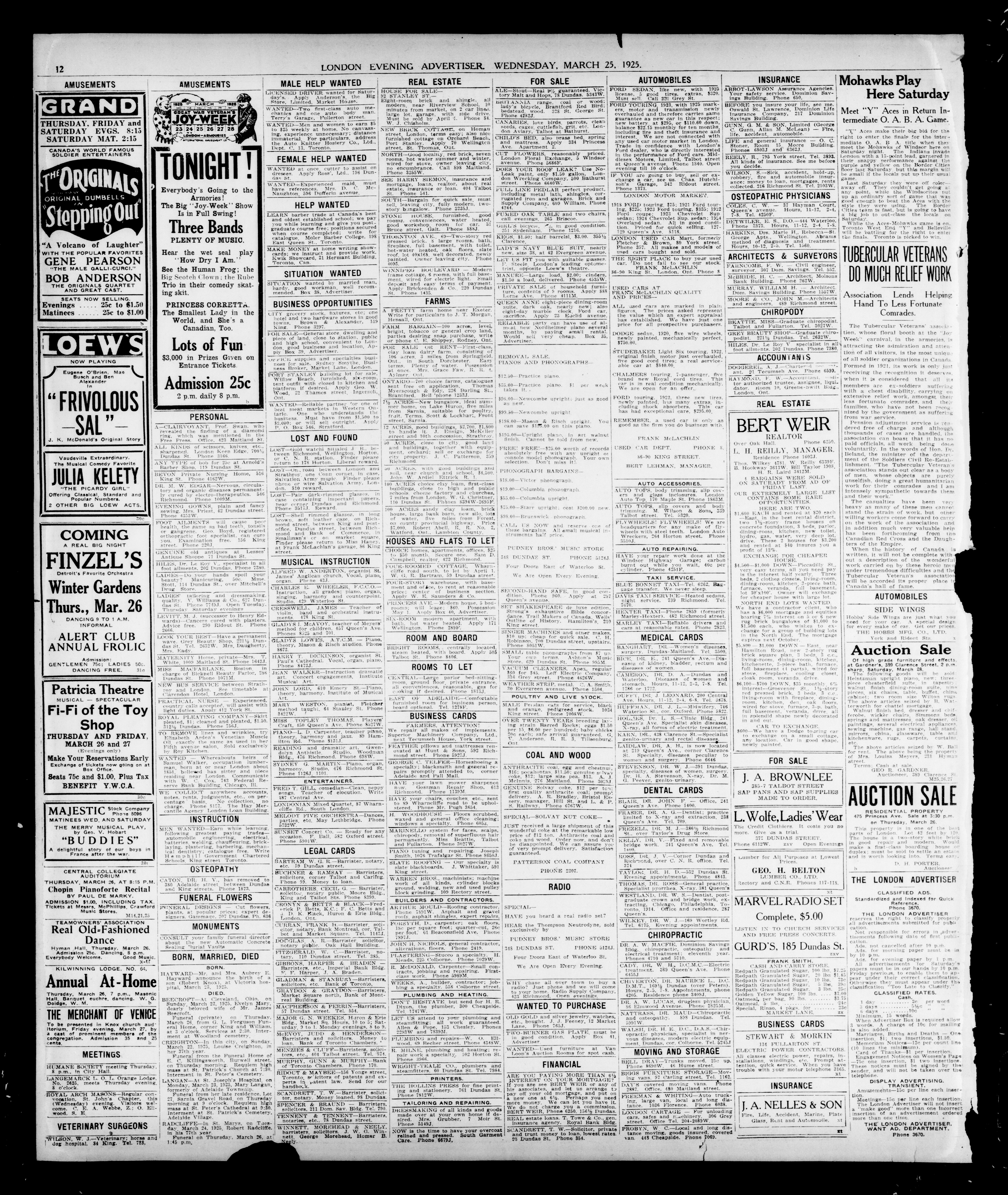 London Evening Advertiser. : London evening advertiser : 61st Year, No. 24232 (March 25, 1925)