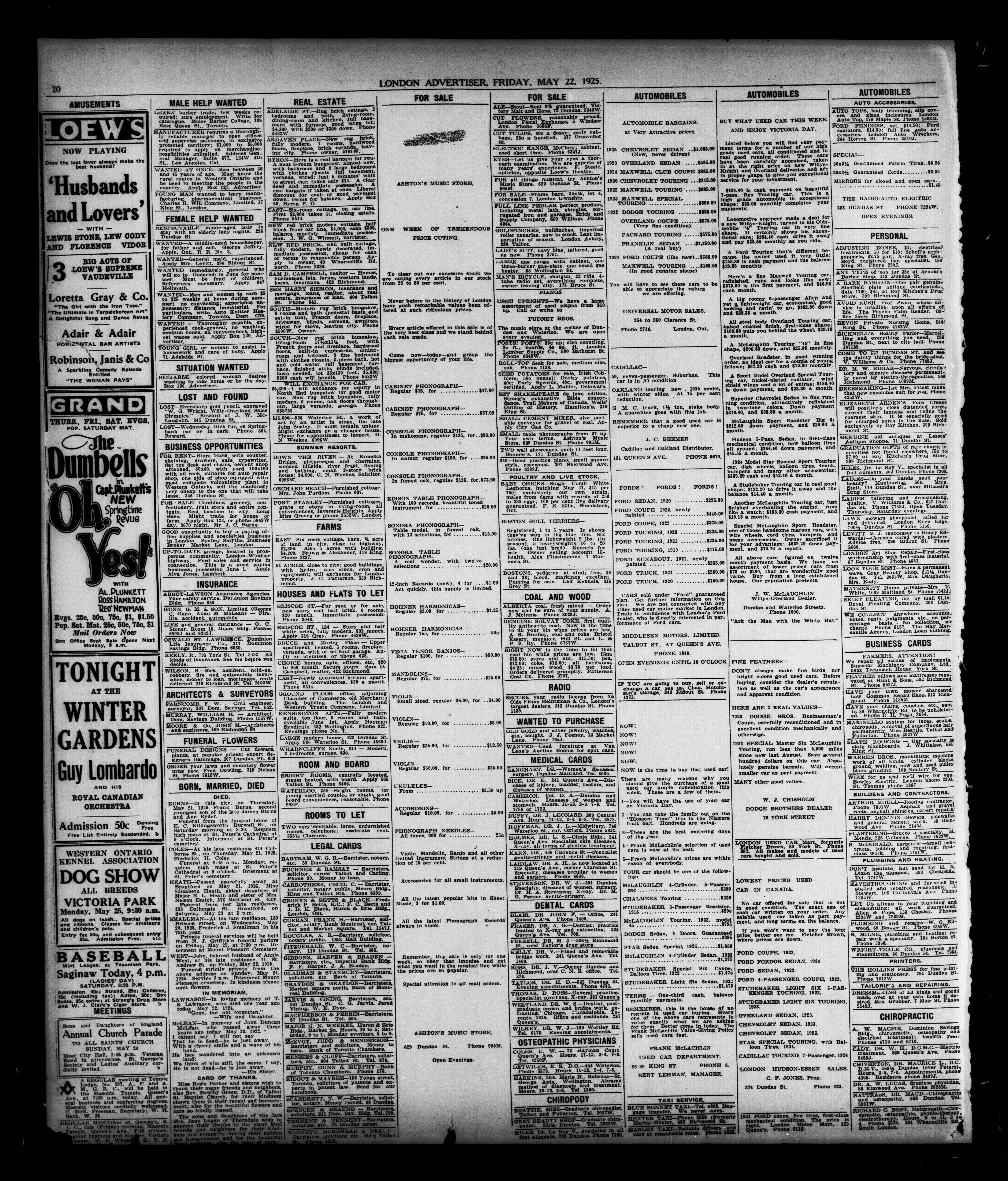 London Evening Advertiser. : London Evening Advertiser : 62nd Year, No. 24282 (May 22, 1925)