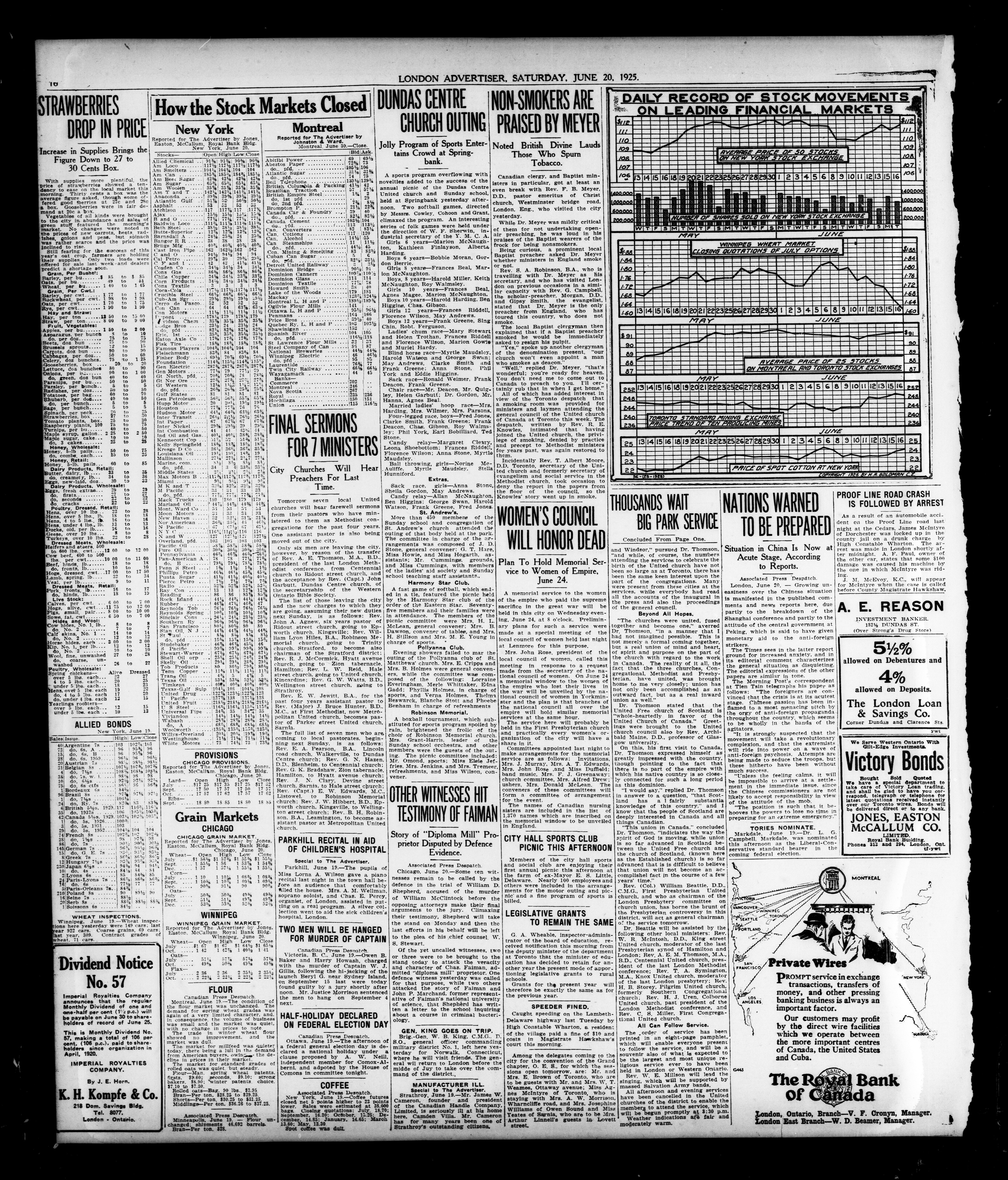 London Evening Advertiser. : London Evening Advertiser : 62nd Year, No. 24307 (June 20, 1925)