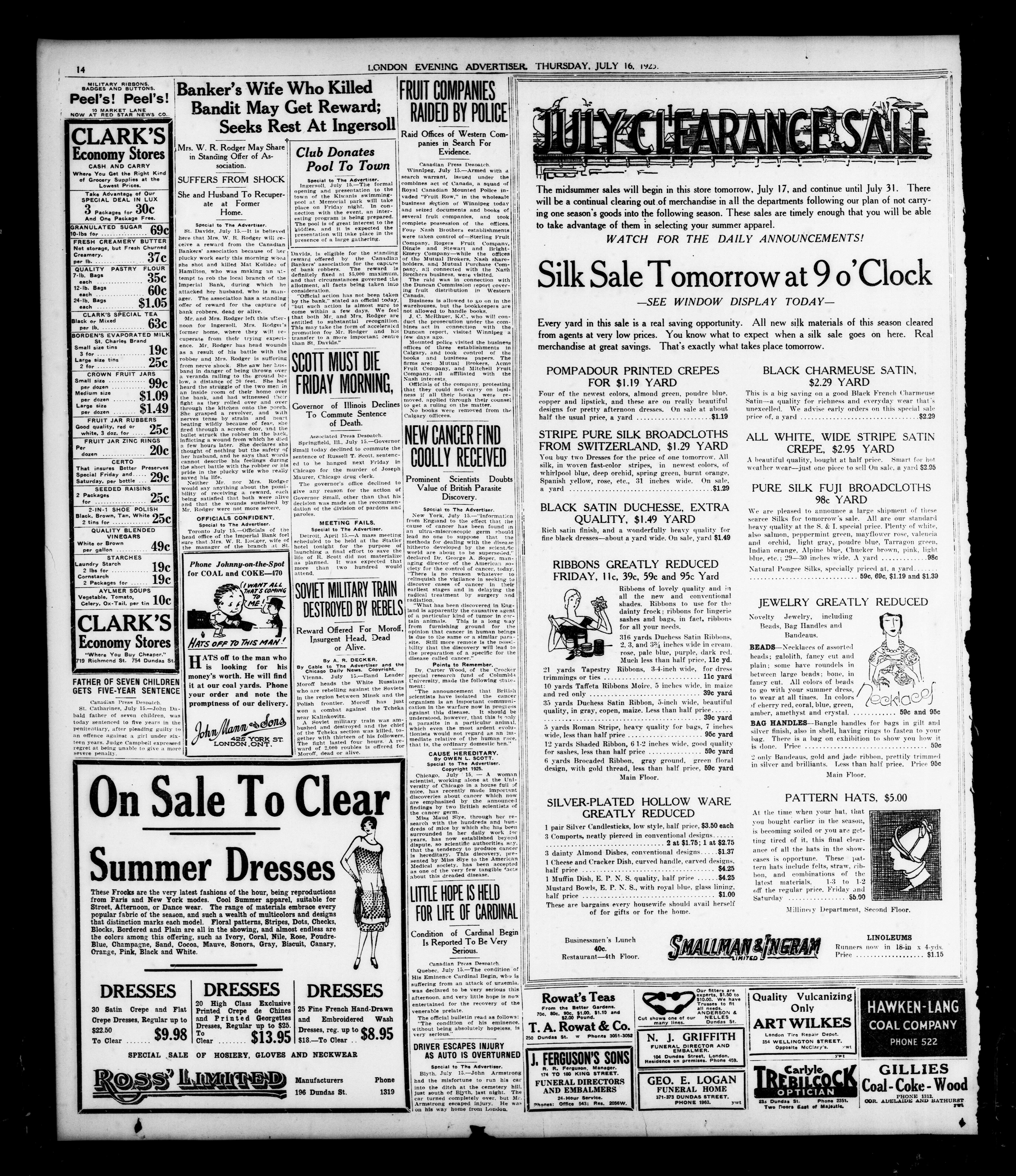 London Evening Advertiser : 62nd Year, No. 24329 (July 16, 1925)