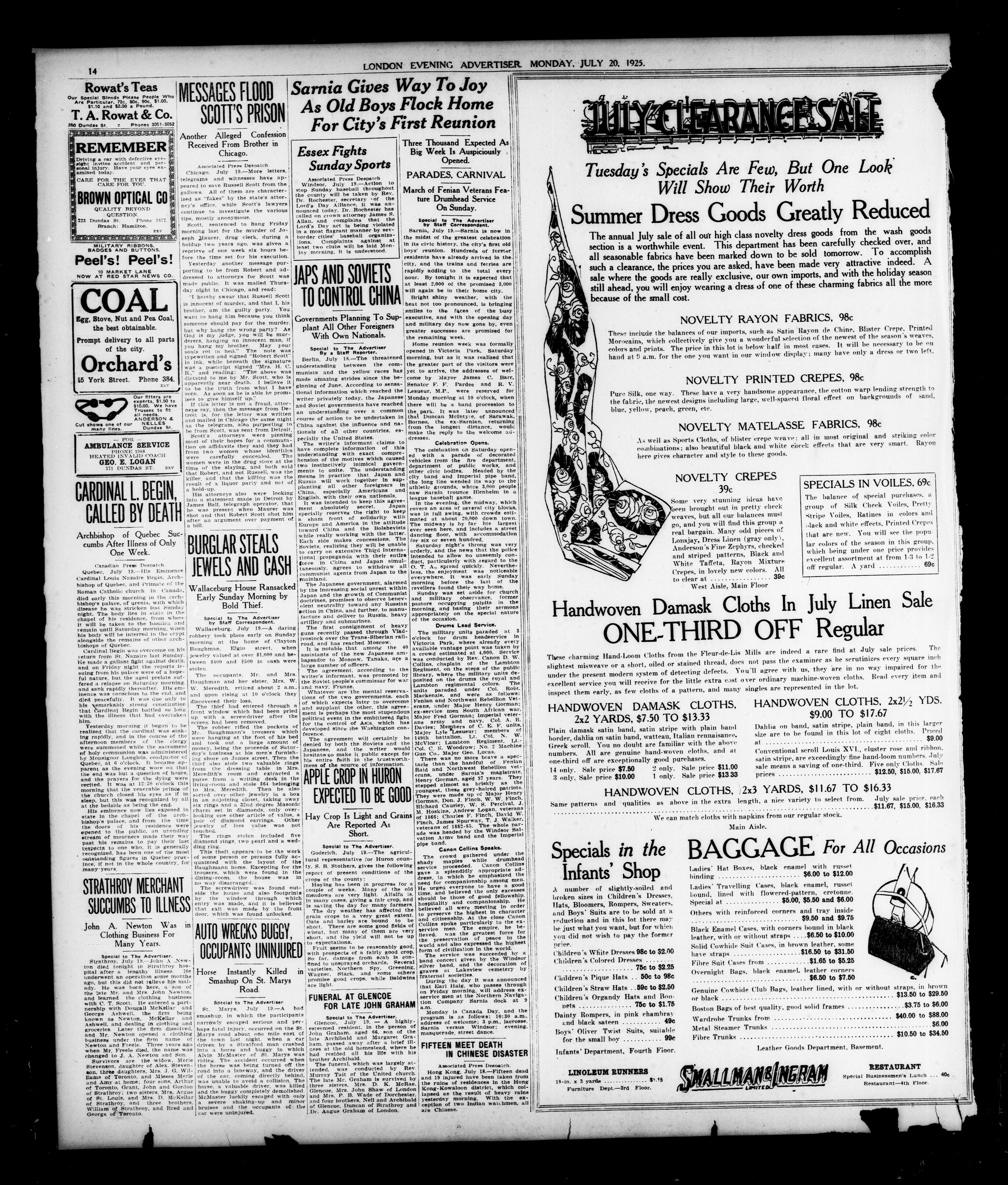 - London Evening Advertiser : 62nd Year, No. 24332 (July 20, 1925)