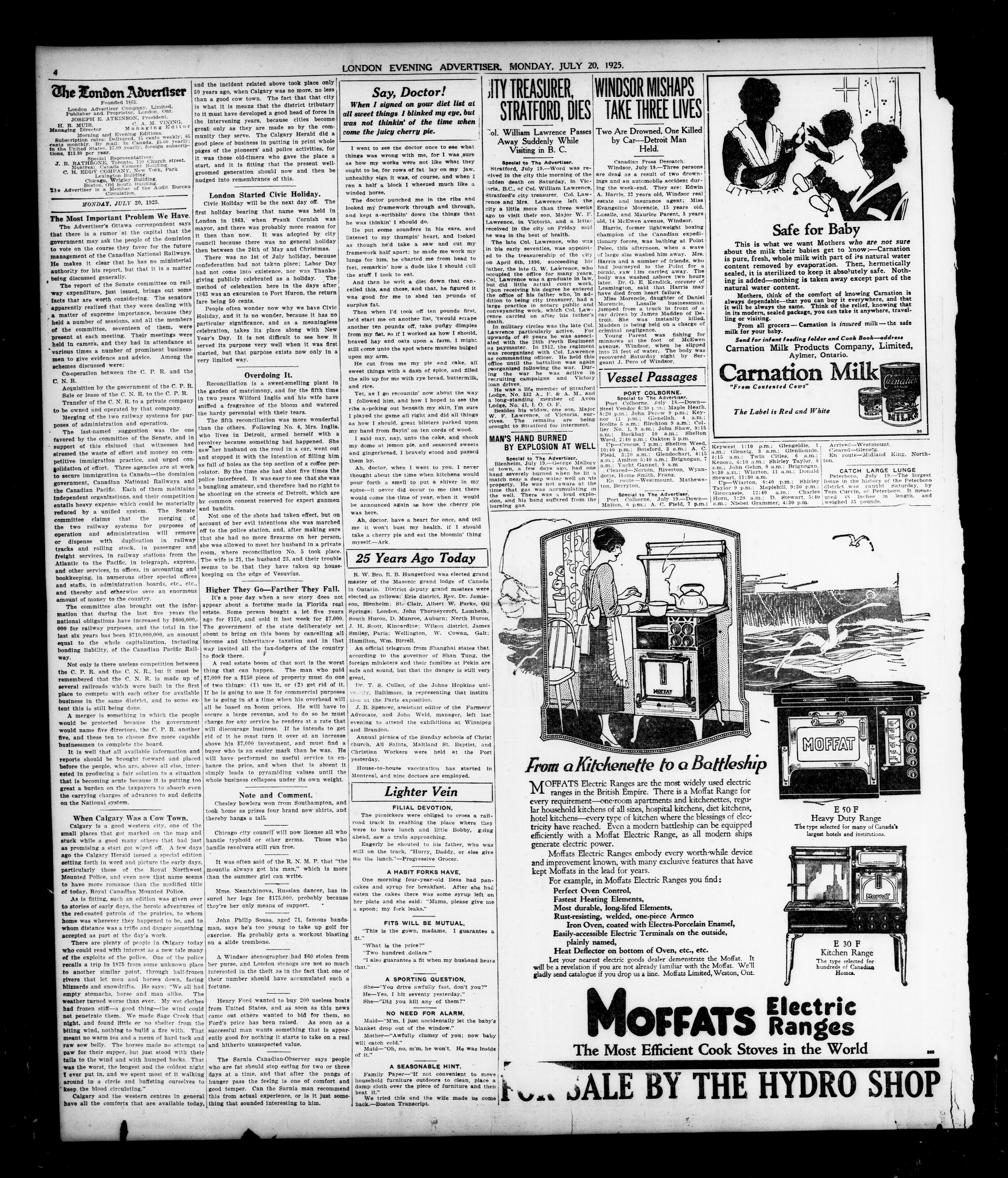 London Evening Advertiser. : London Evening Advertiser : 62nd Year, No. 24332 (July 20, 1925)