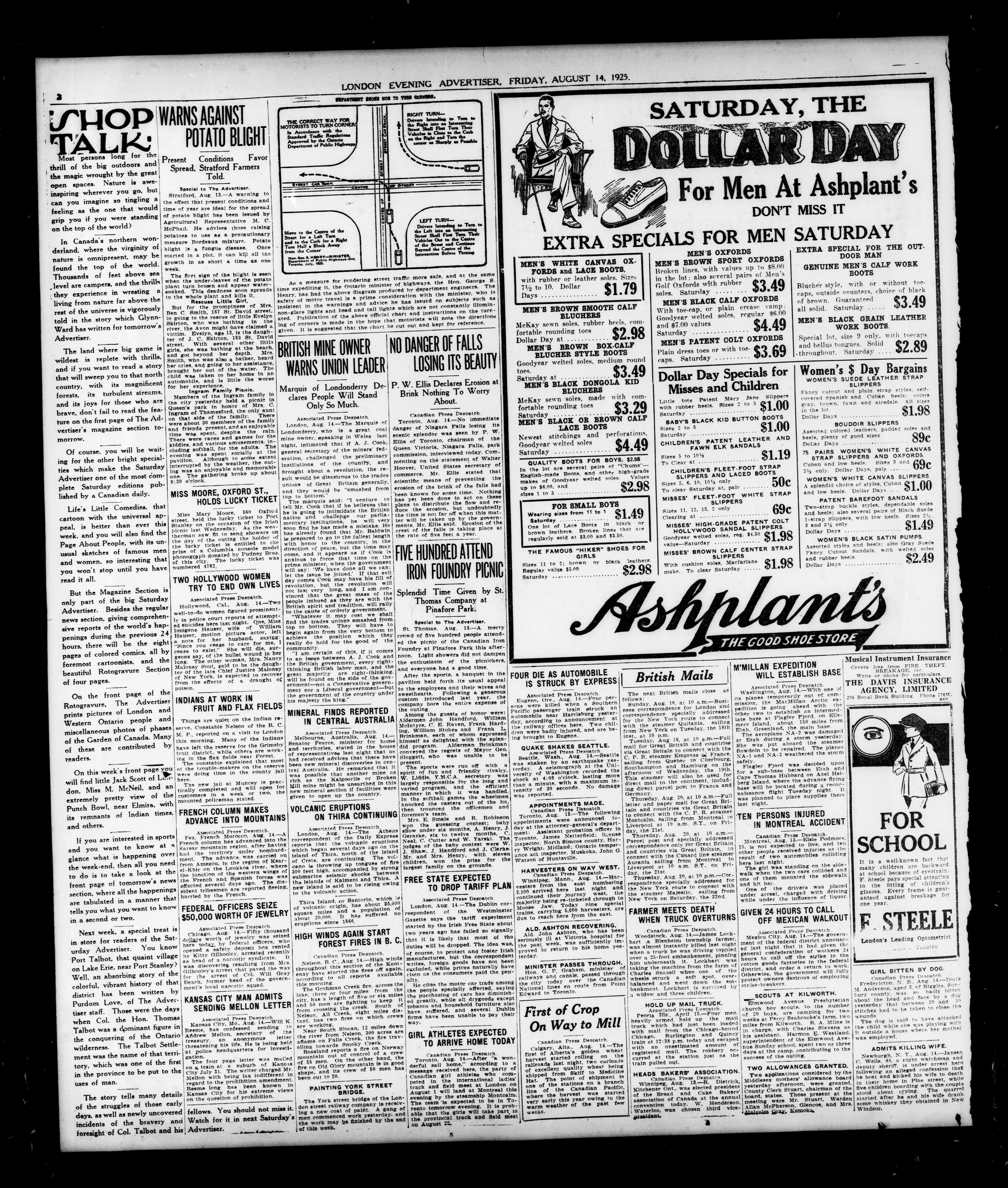 London Evening Advertiser. : London Evening Advertiser : 62nd Year, No. 24354 (August 14, 1925)