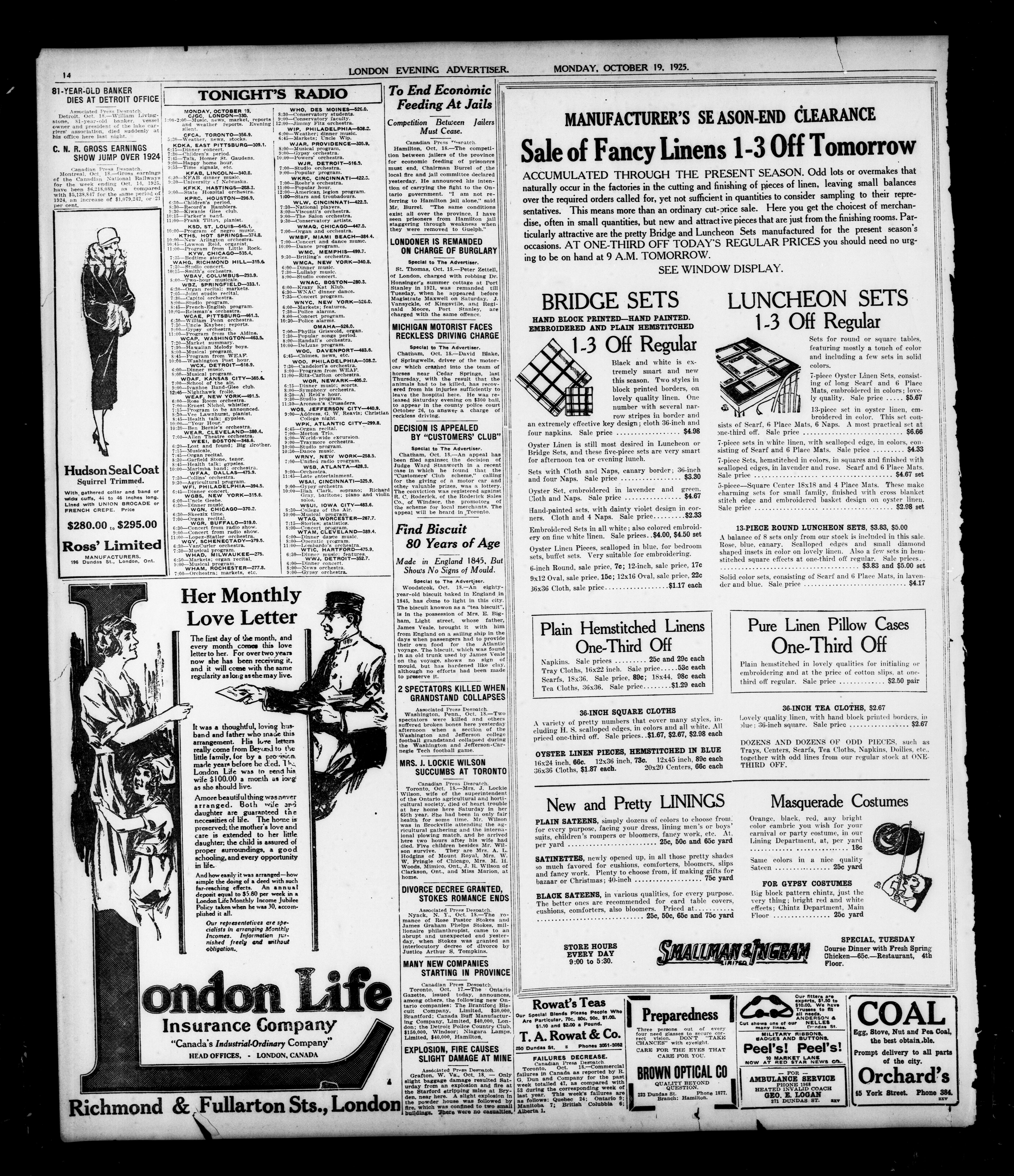 - London Evening Advertiser : 62nd Year, No. 24409 (October 19, 1925)