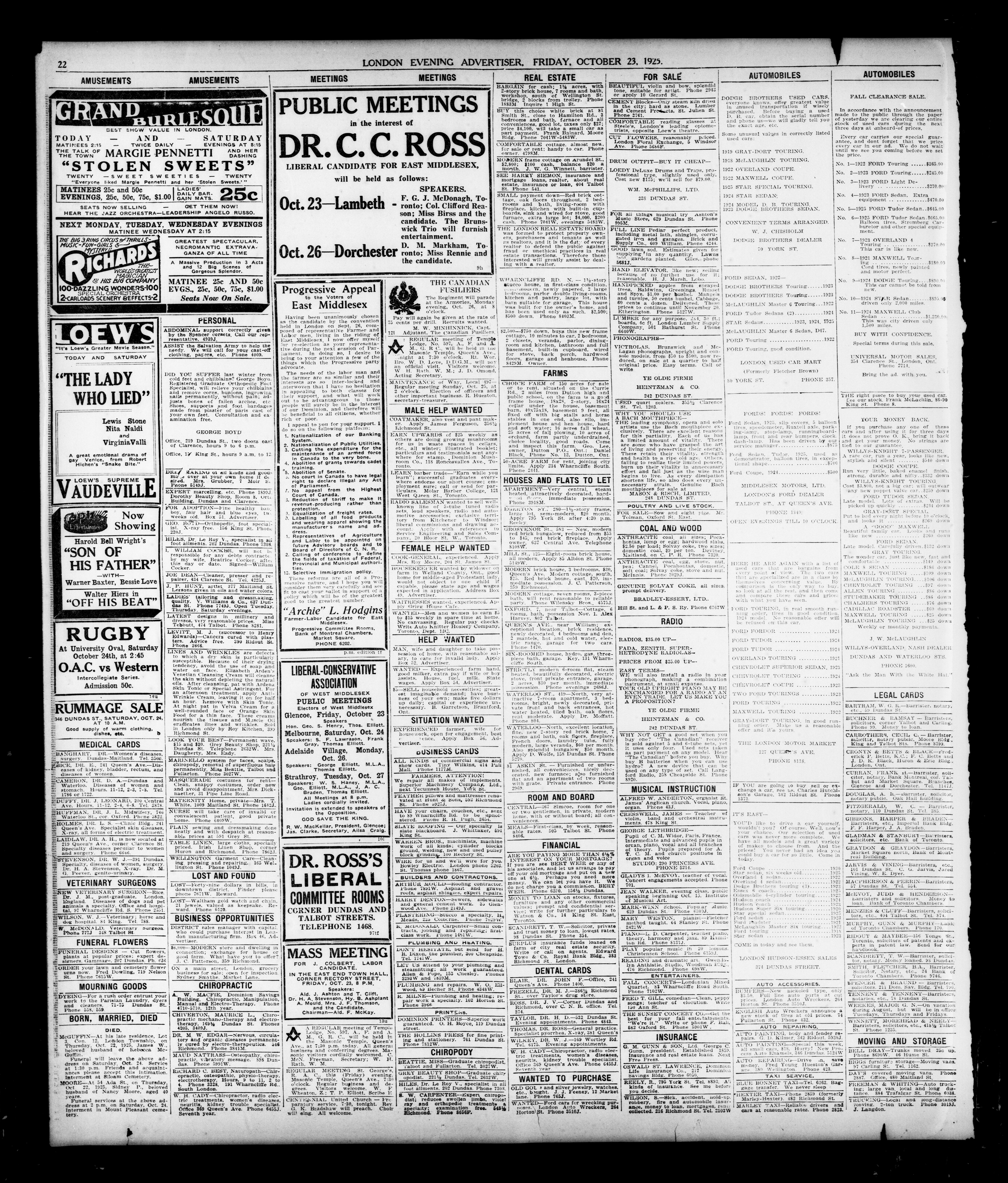 London Evening Advertiser. : London Evening Advertiser : 62nd Year, No. 24414 (October 23, 1925)