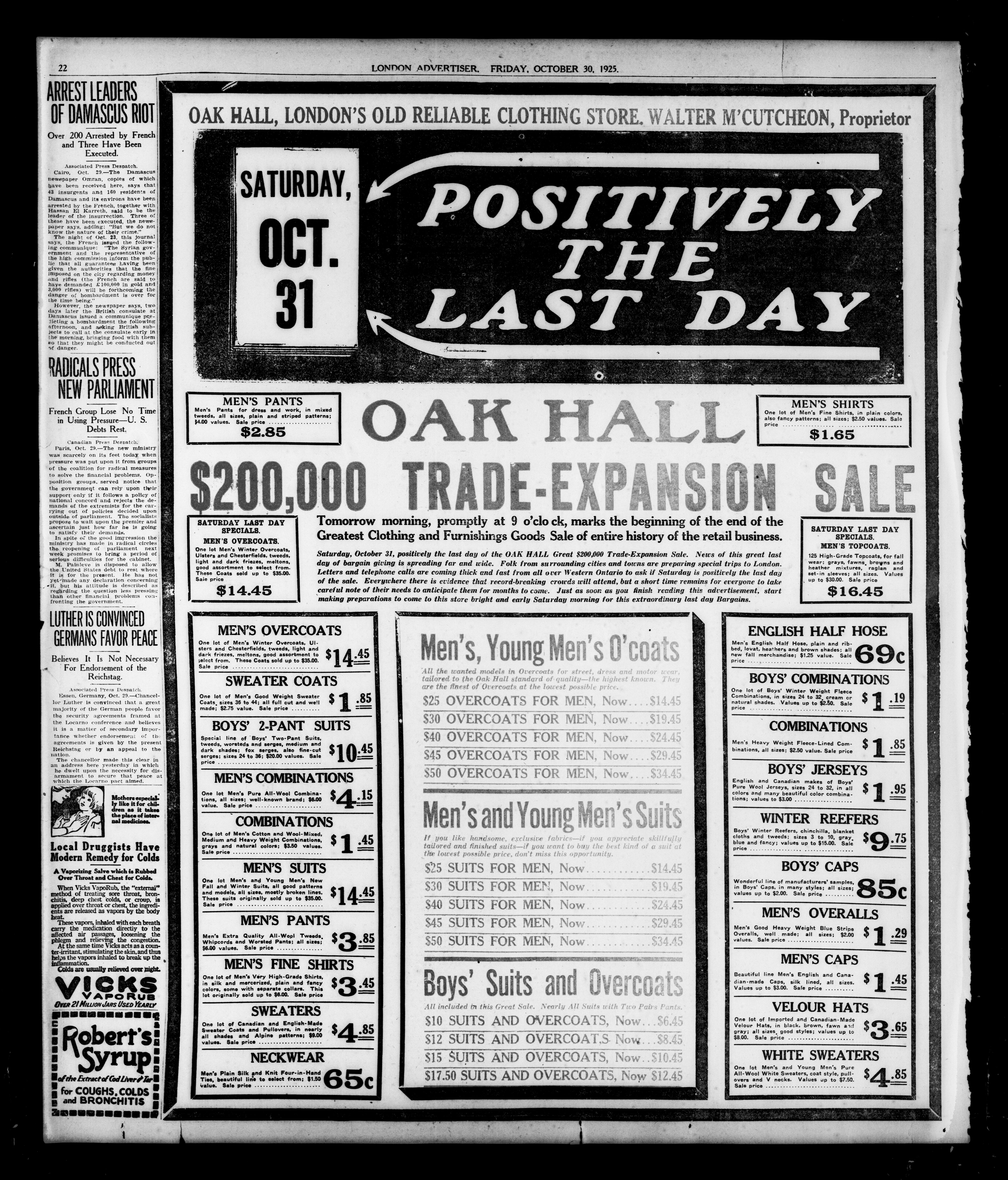 - London Evening Advertiser : 62nd Year, No. 24420 (October 30, 1925)