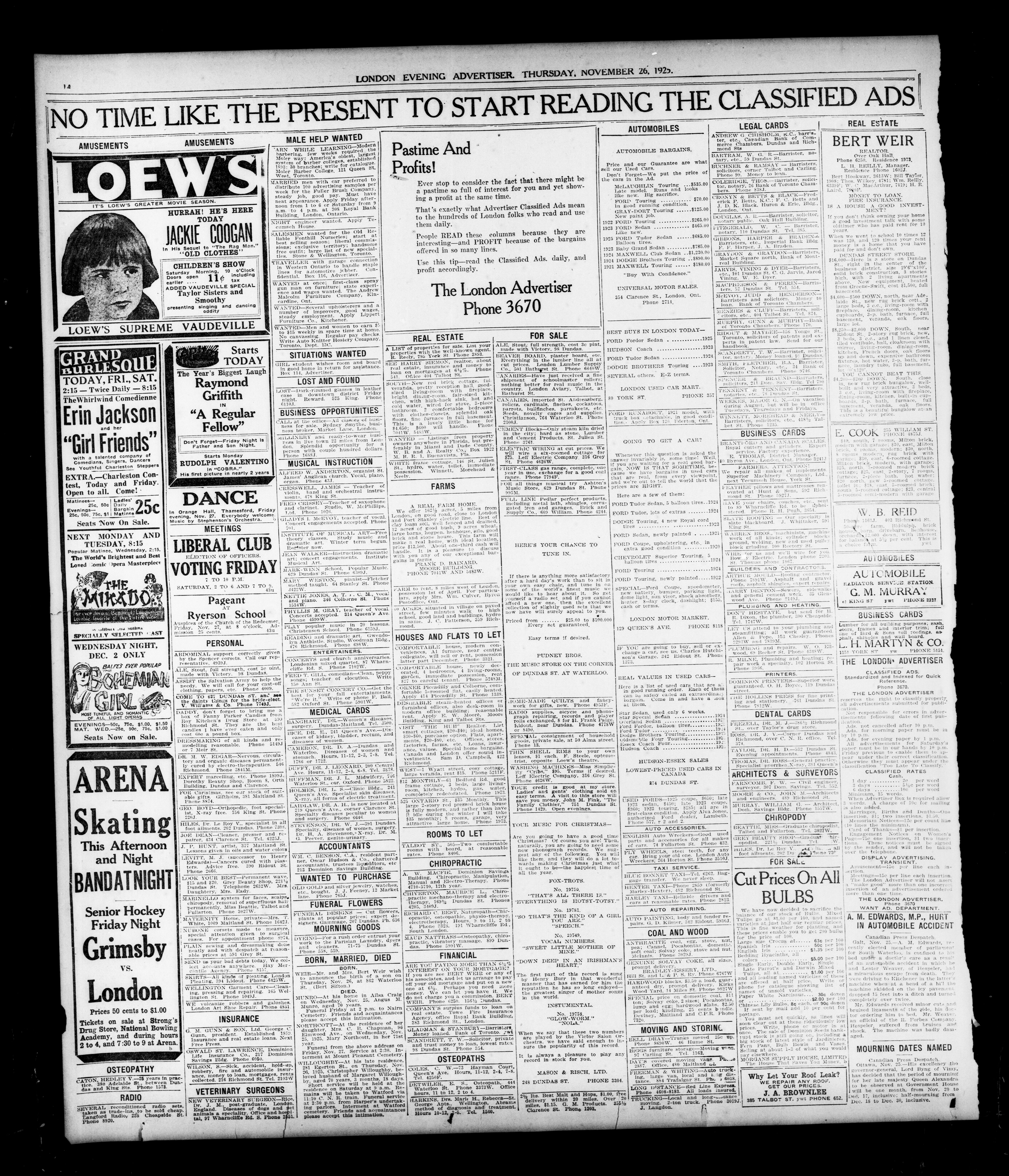 - London Evening Advertiser : 62nd Year, No. 24443 (November 26, 1925)