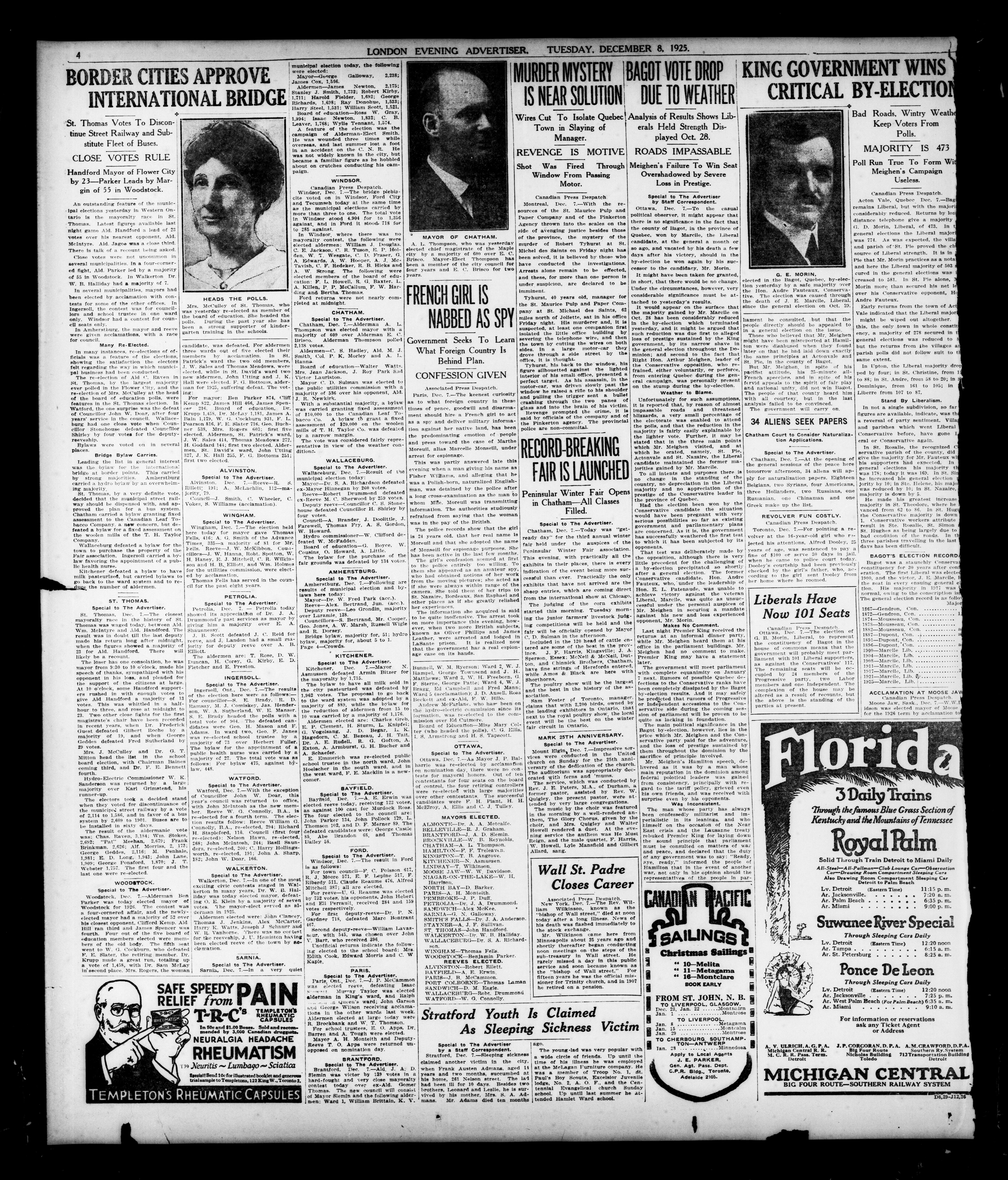 London Evening Advertiser. : London Evening Advertiser : 62nd Year, No. 24453 (December 8, 1925)