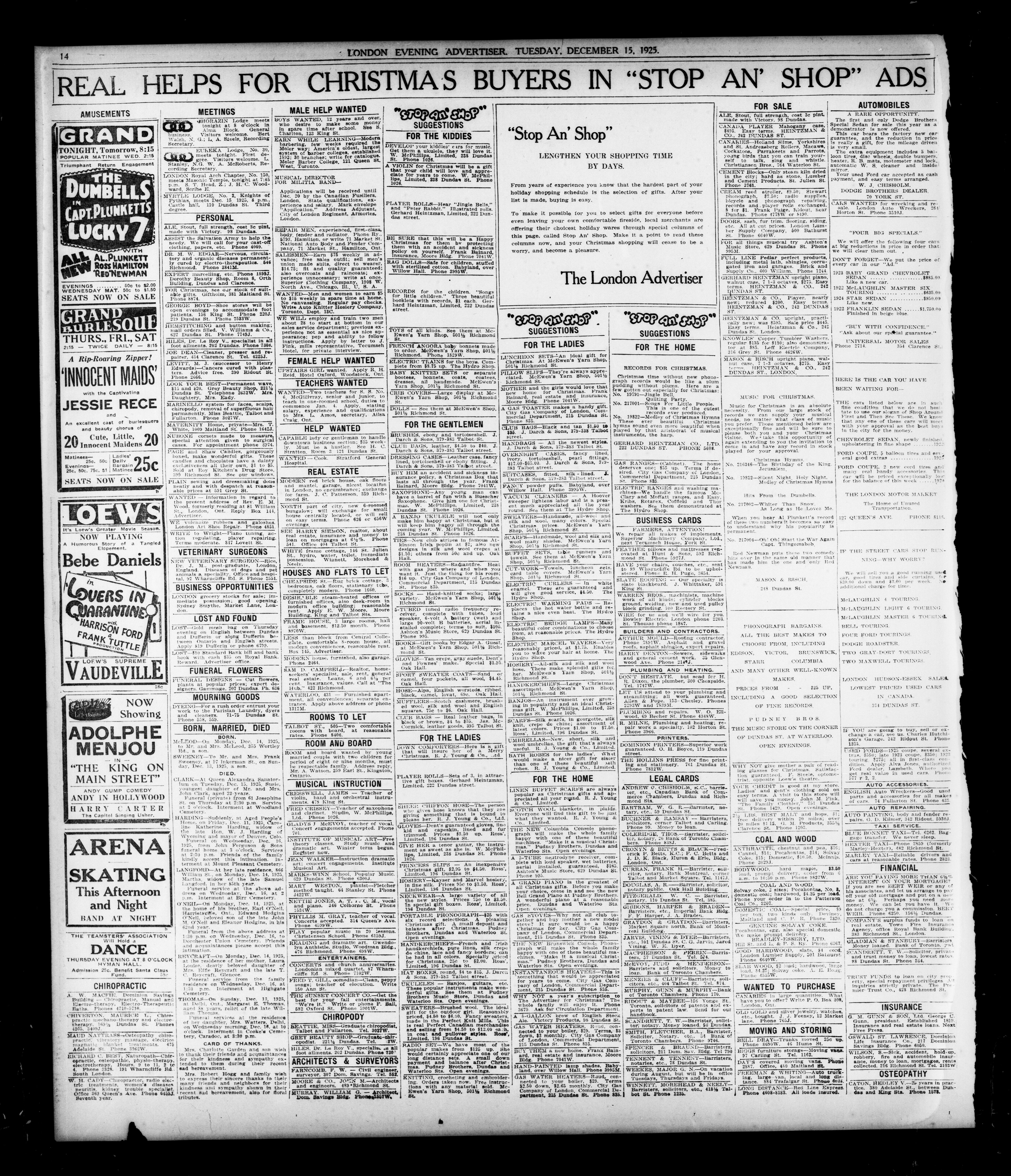 - London Evening Advertiser : 62nd Year, No. 24459 (December 15, 1925)