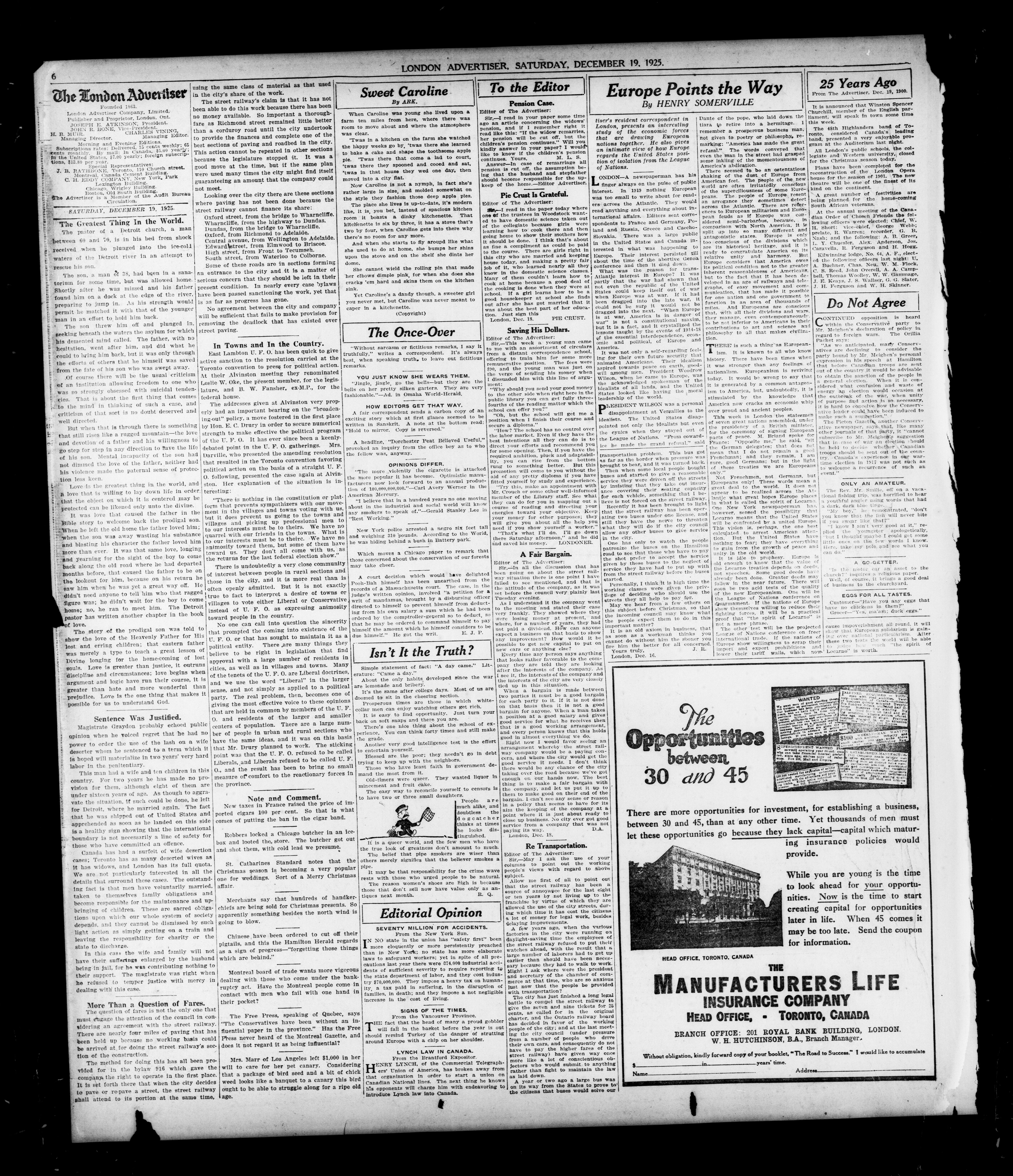 London Evening Advertiser : 62nd Year, No. 24463 (December 19, 1925)