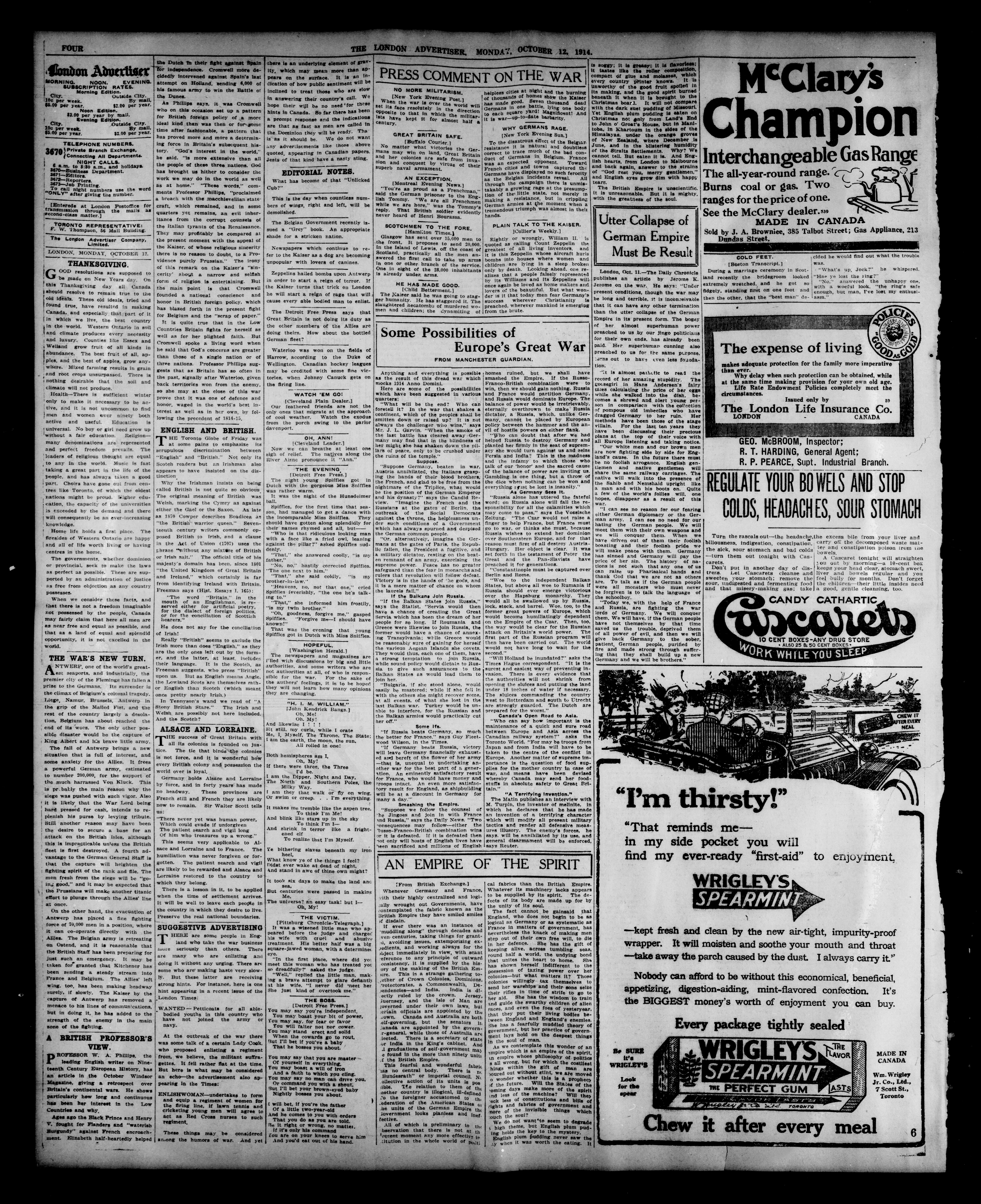The Morning advertiser : 51st Year, No. 22160 (October 12, 1914)