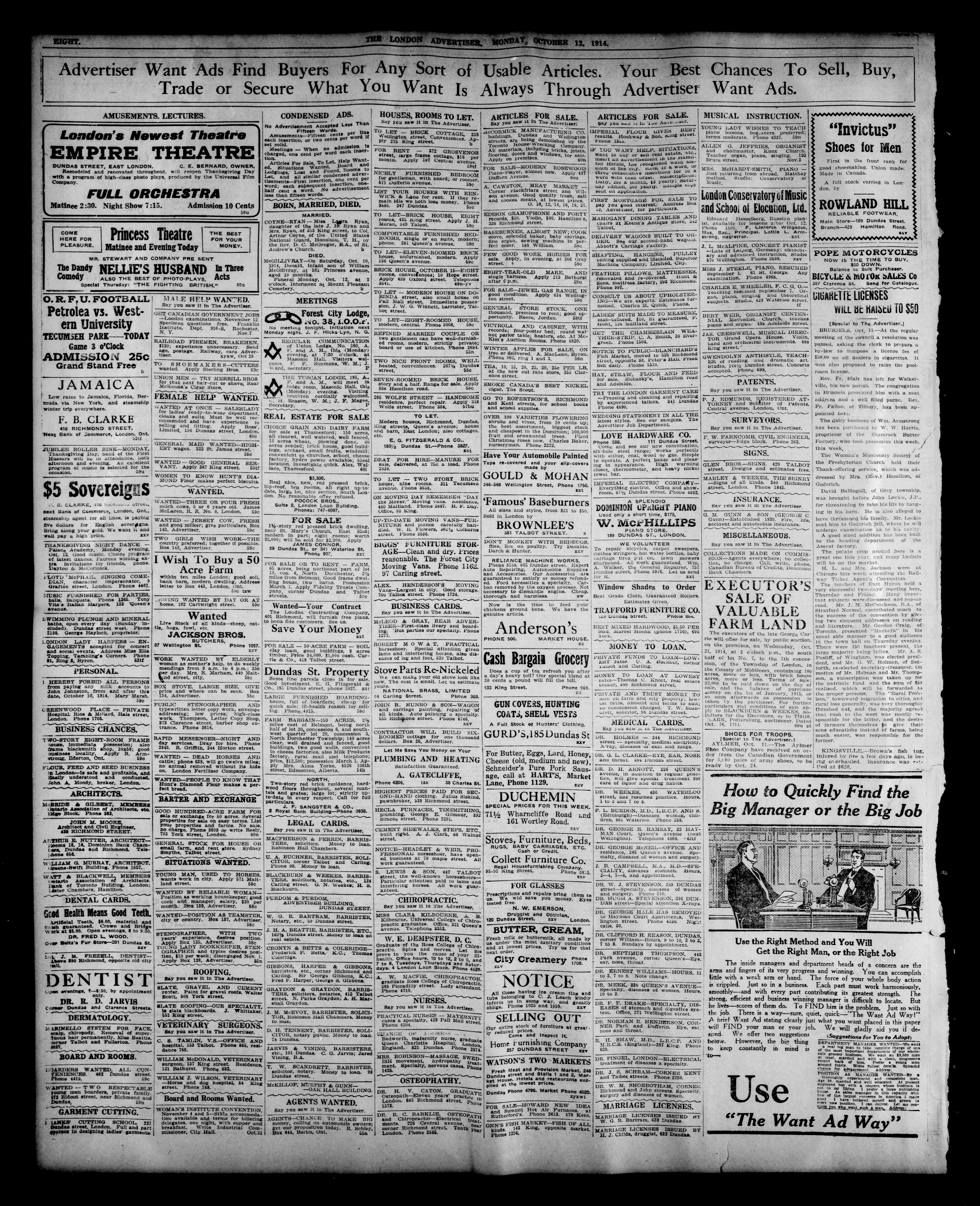 The Morning advertiser : 51st Year, No. 22160 (October 12, 1914)