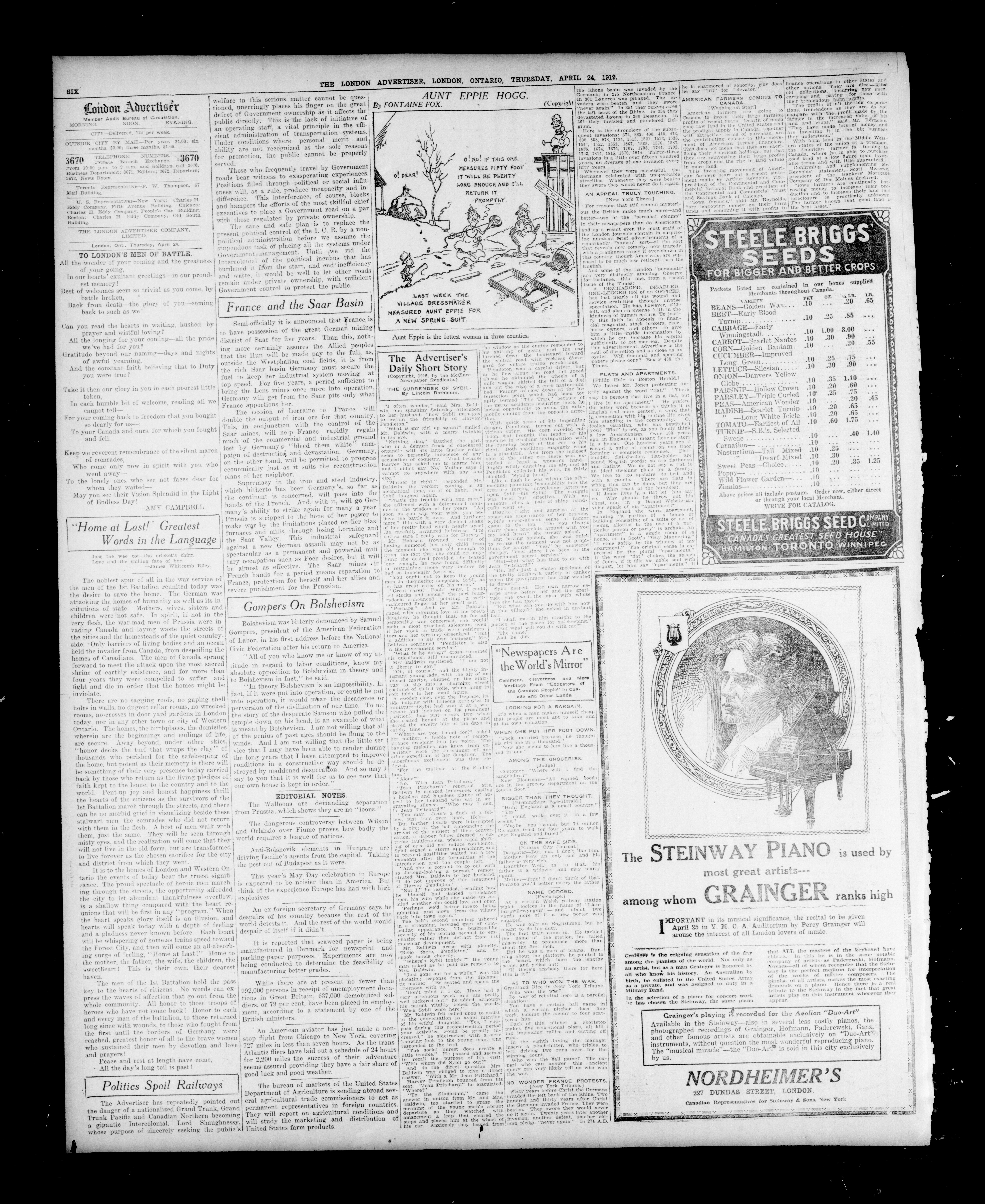 The Morning advertiser : 55th Year, No. 22379 (April 24, 1919)