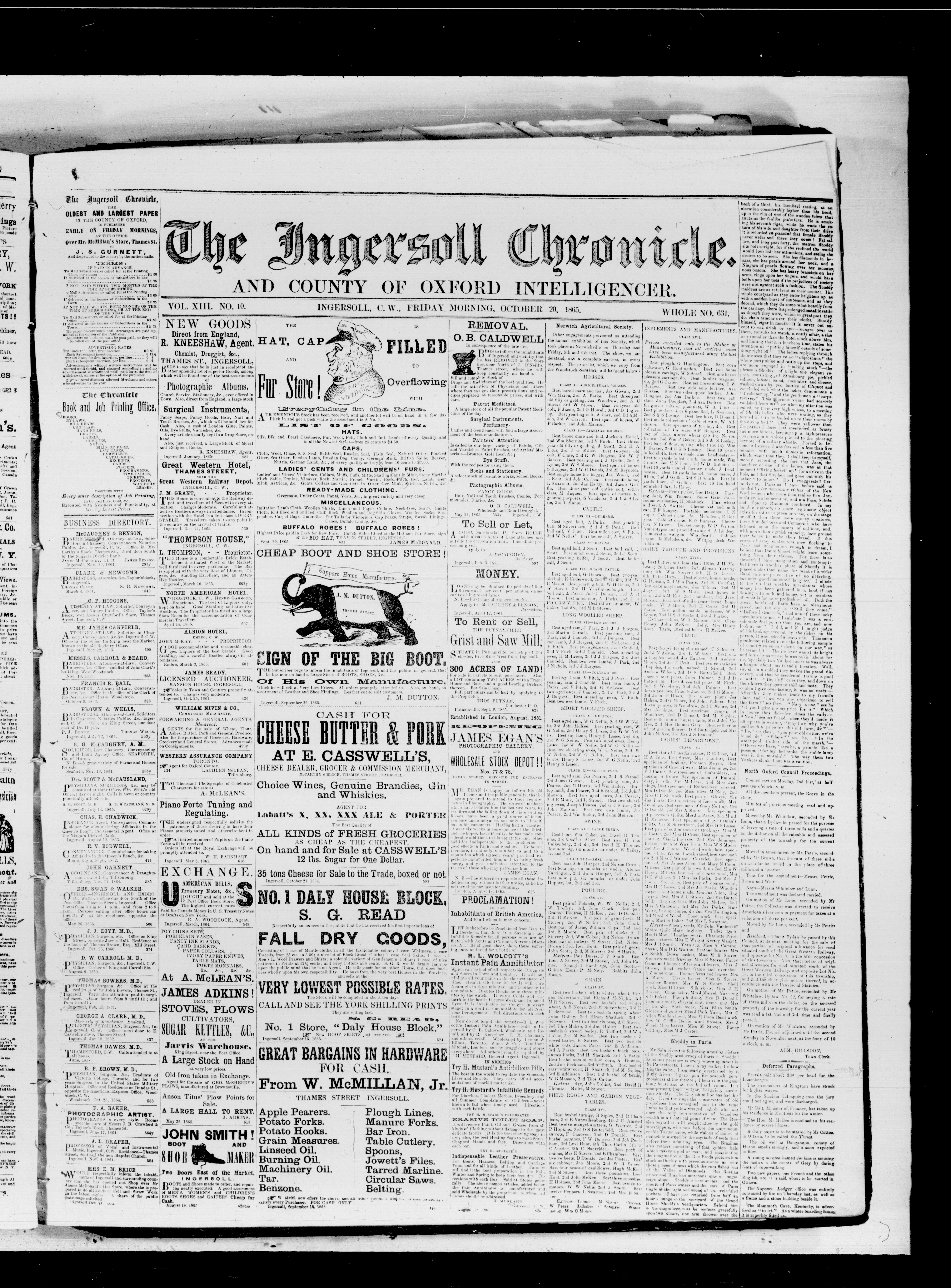 The Ingersoll Chronicle and County of Oxford intelligencer : August 24, 1860-January 26, 1866