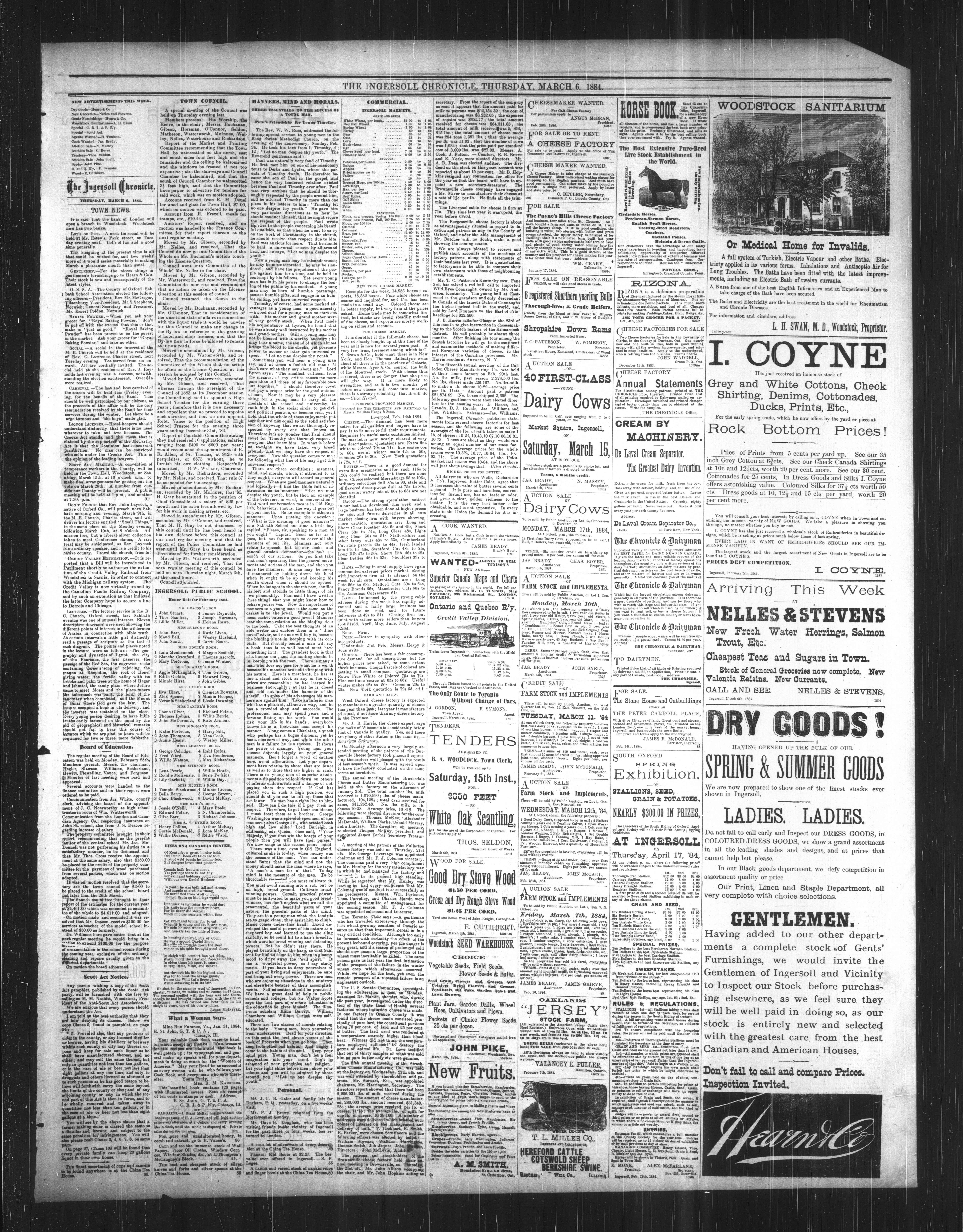 The Ingersoll chronicle and Canadian dairyman : January 10, 1884-July 31, 1884