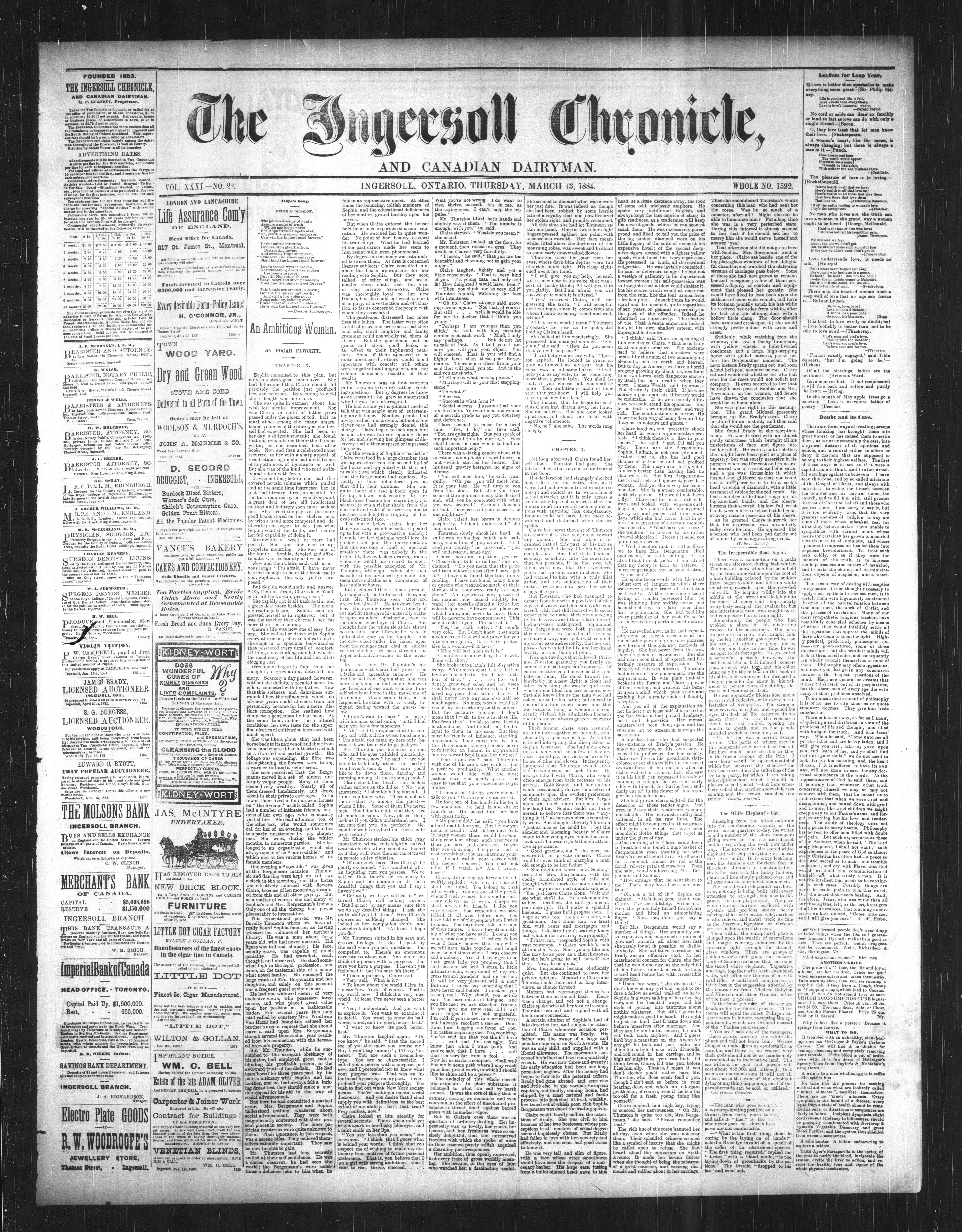 The Ingersoll chronicle and Canadian dairyman : January 10, 1884-July 31, 1884