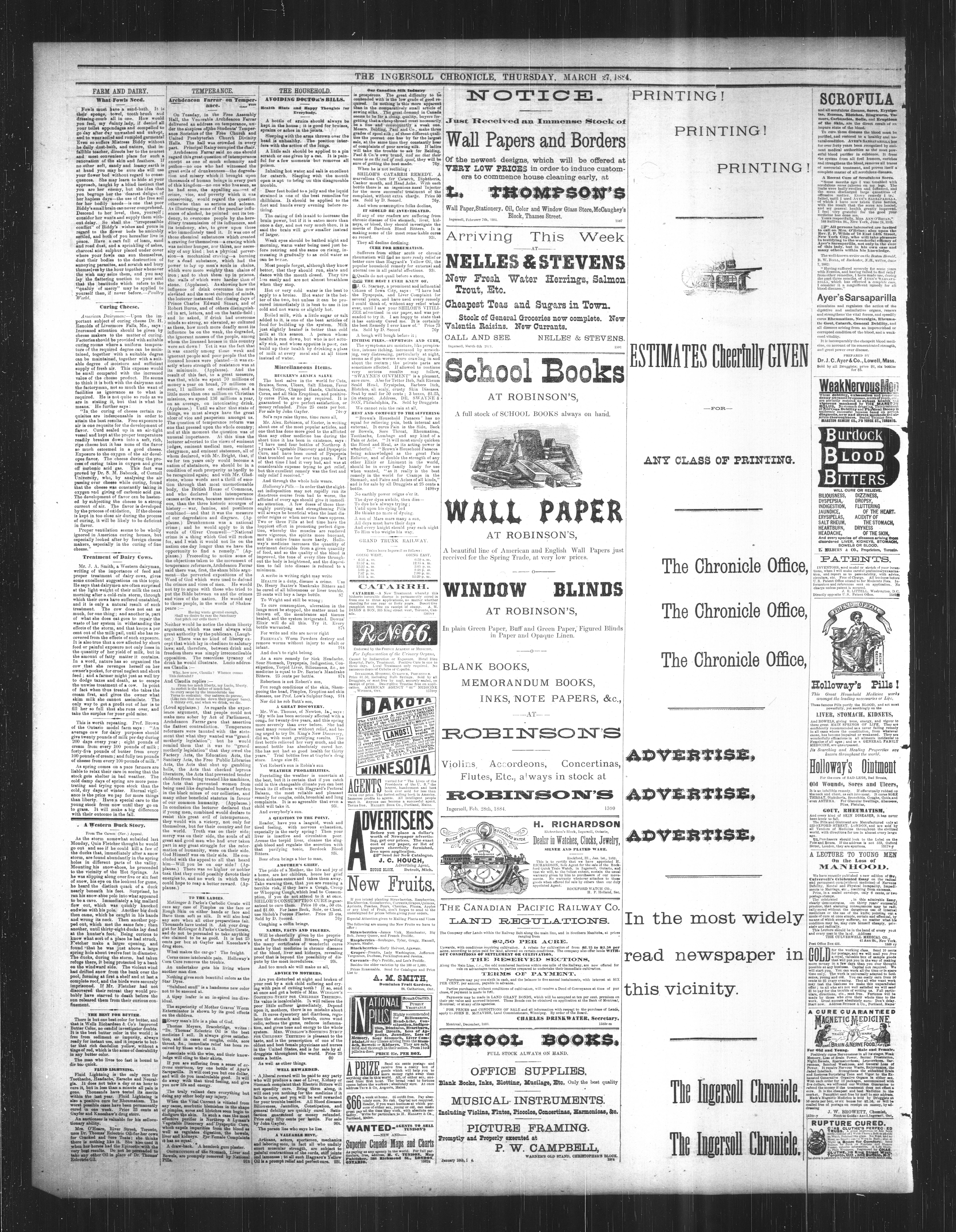 The Ingersoll chronicle and Canadian dairyman : January 10, 1884-July 31, 1884