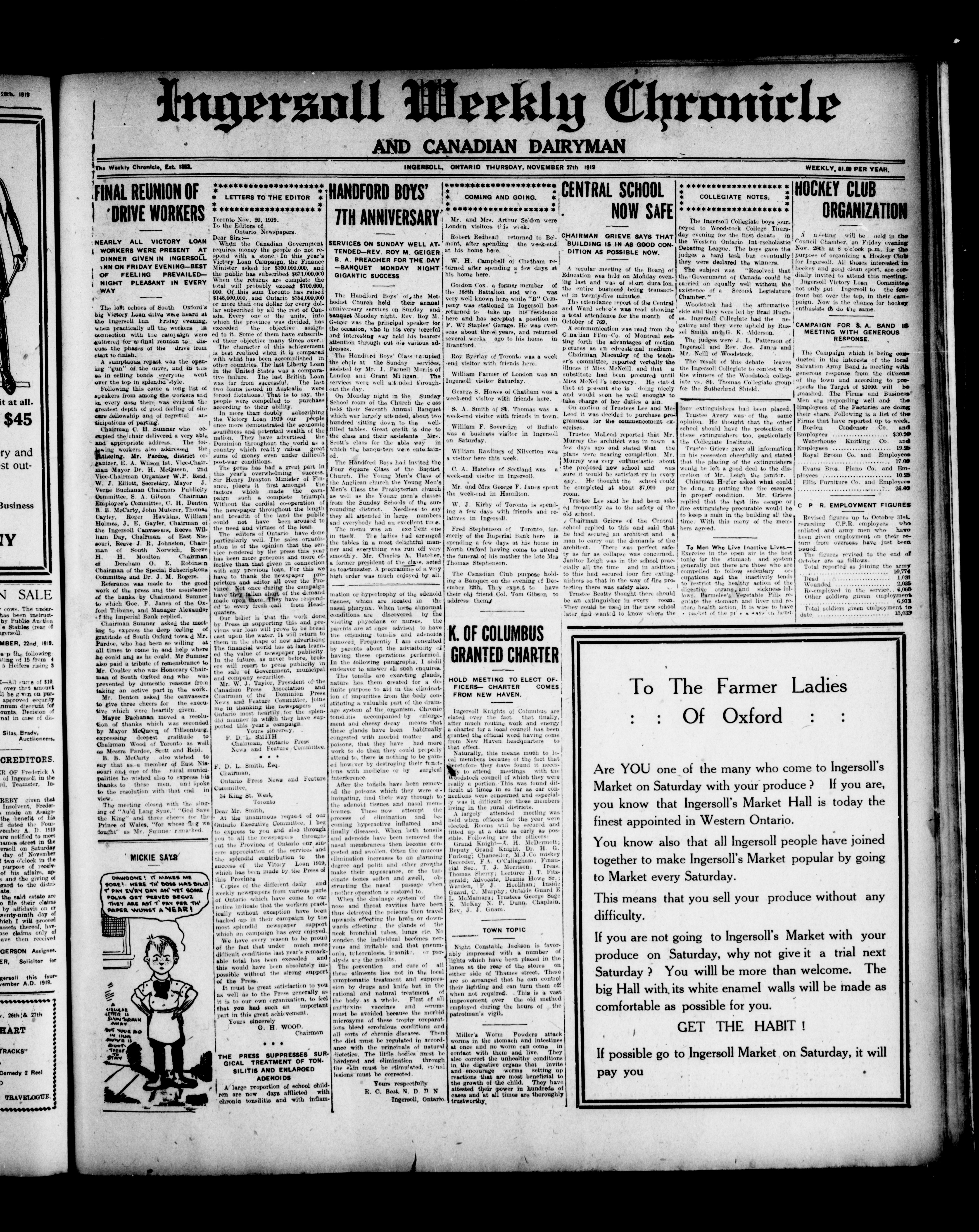 Ingersoll Weekly Chronicle and Canadian dairyman : June 6, 1918-December 31, 1919