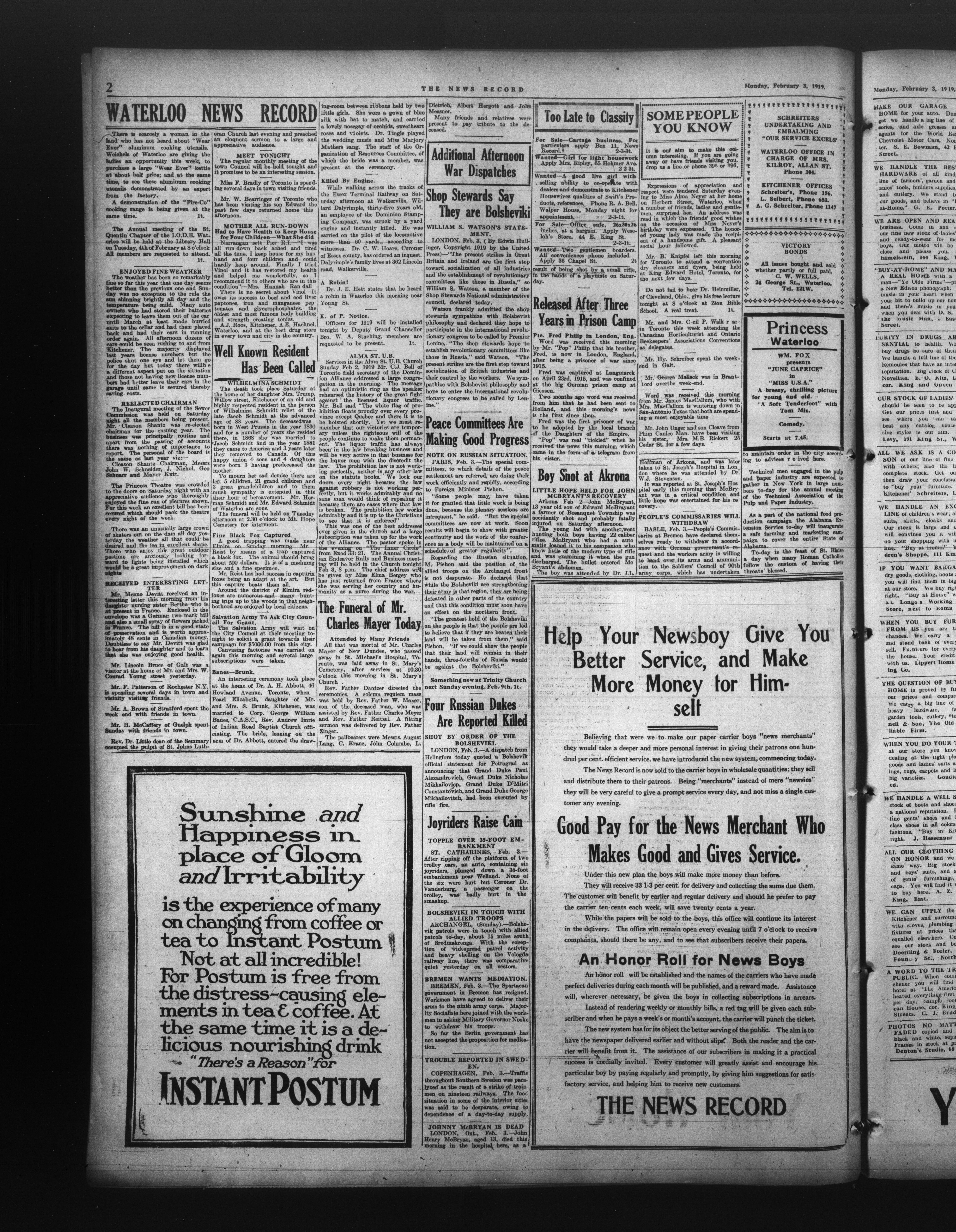 - The news record : Forty-First Year (February 3, 1919)
