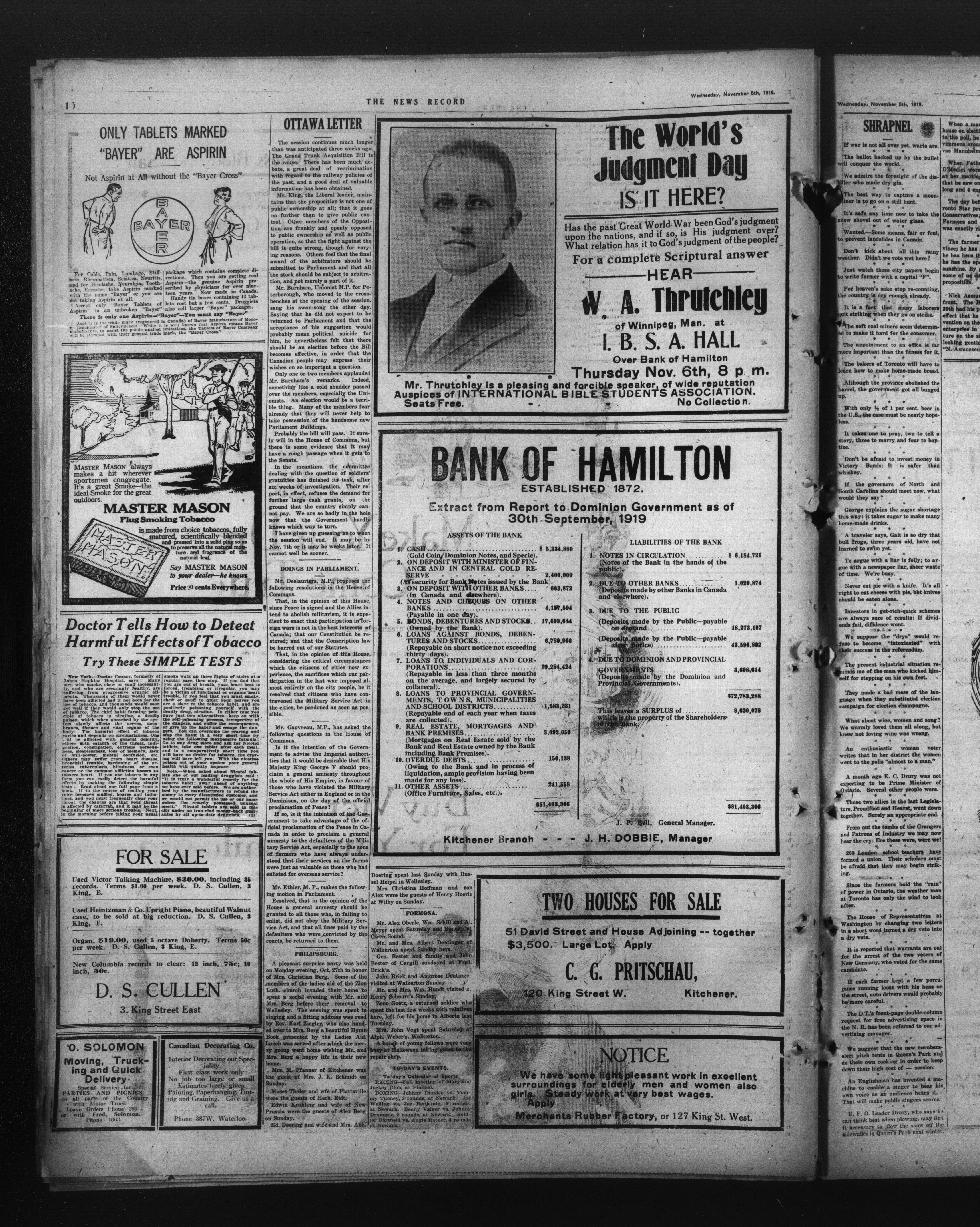 Kitchener, Ontario : The News Record Limited, [1919]; 16 images avec recherche en texte intégral