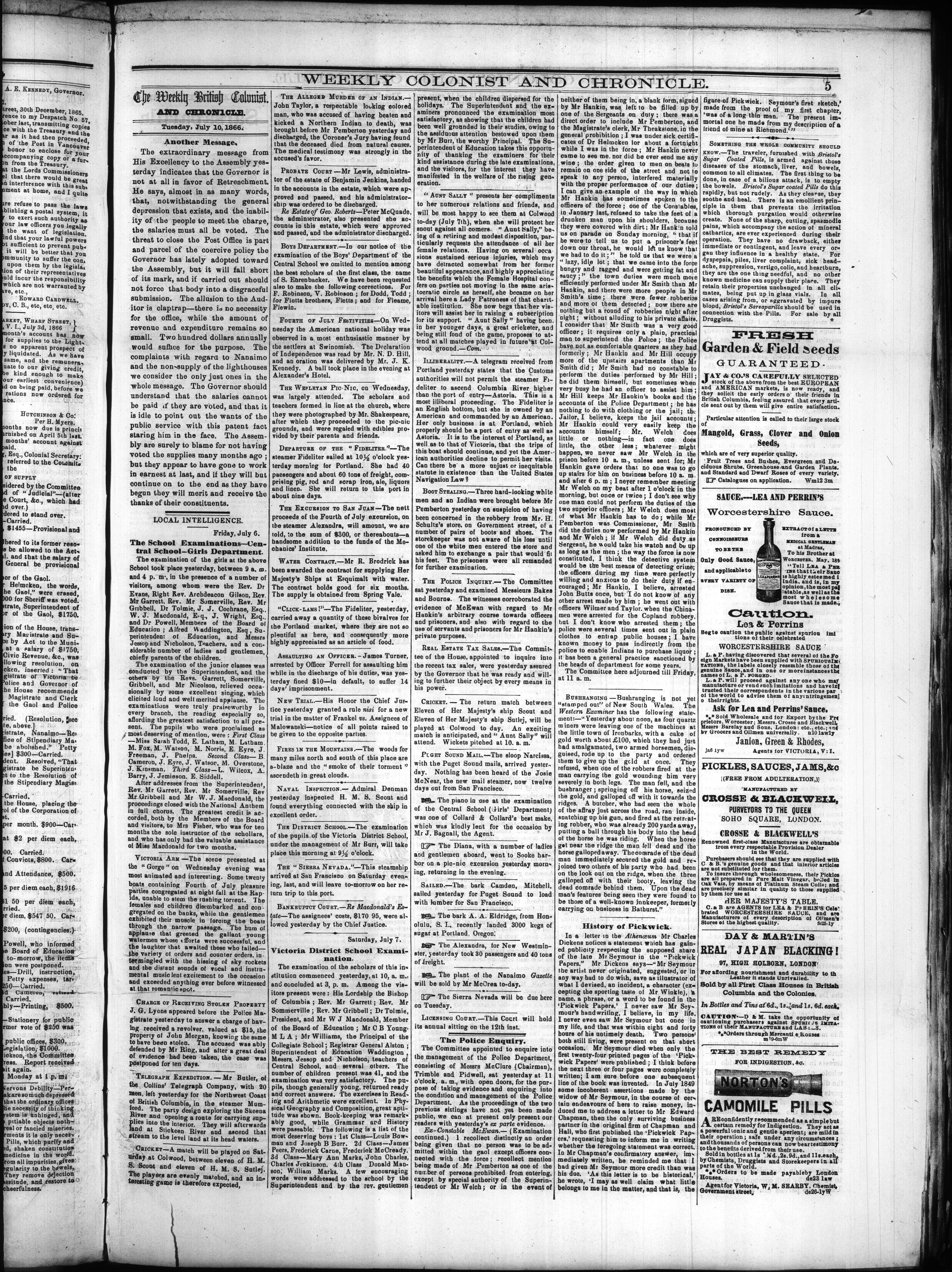 The weekly British colonist and Victoria chronicle. : Vol. 7, No. 35 (July 10, 1866)