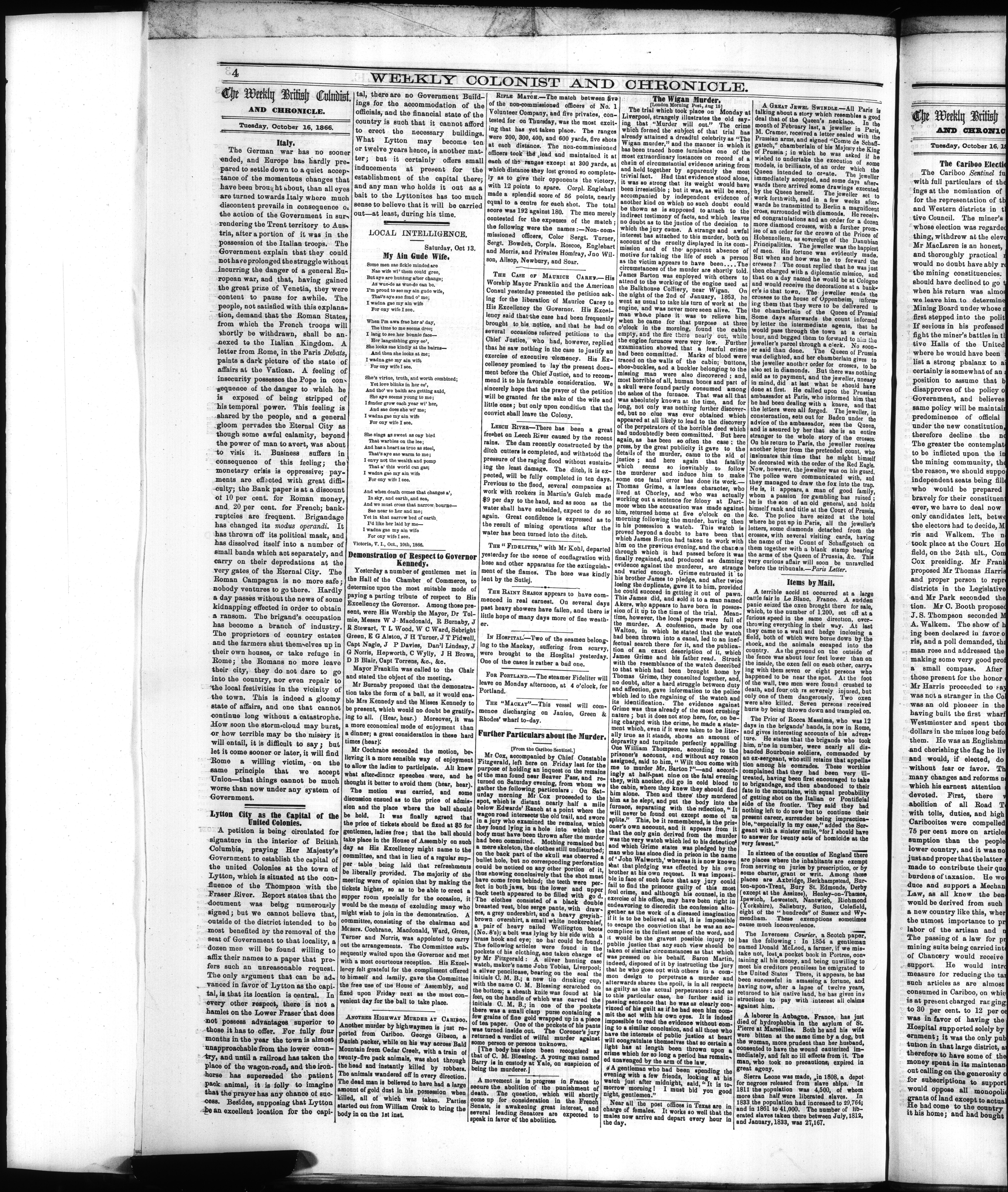 The weekly British colonist and Victoria chronicle. : Vol. 7, No. 49 (October 16, 1866)