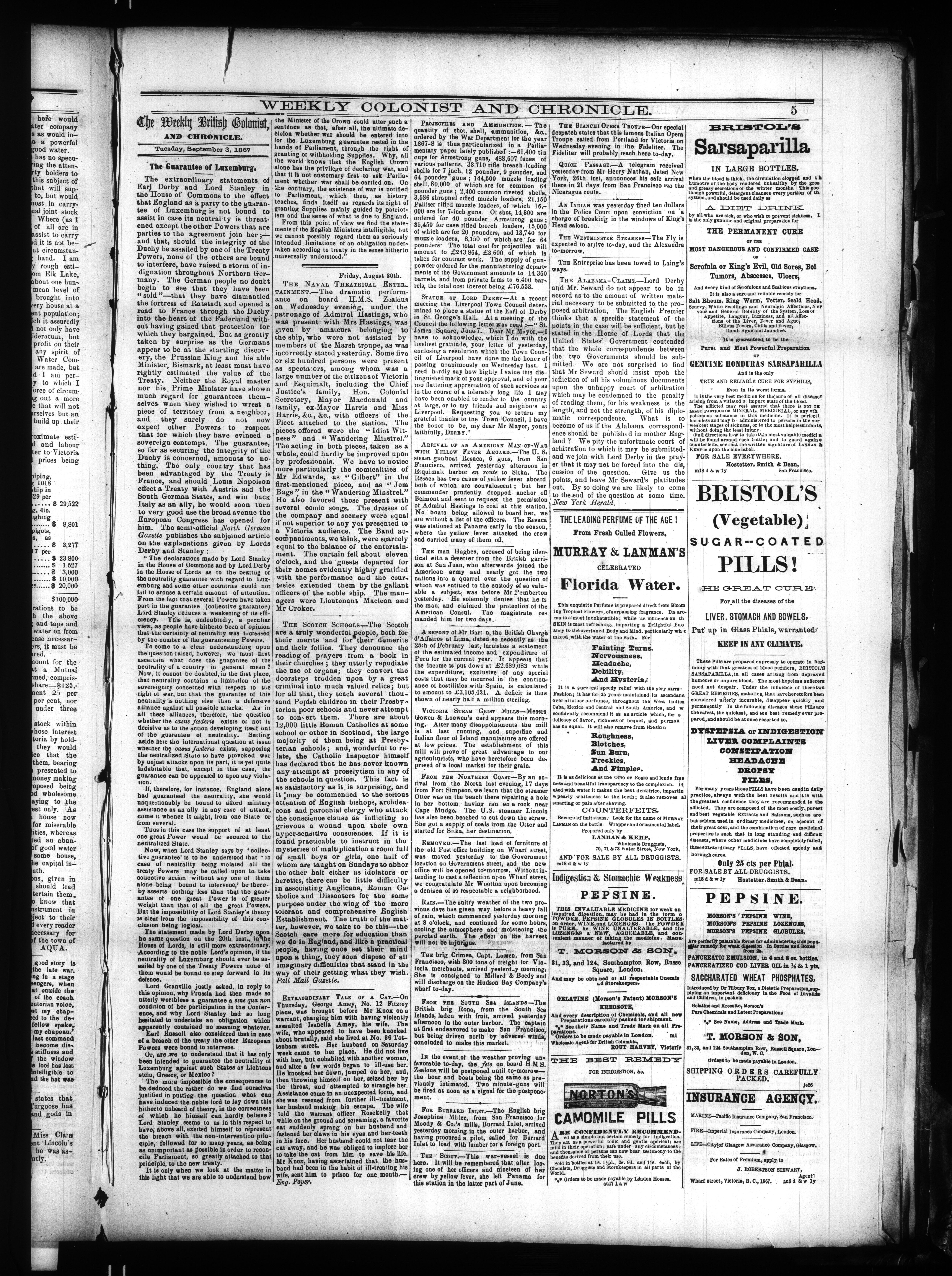 The weekly British colonist and Victoria chronicle. : Vol. 8, No. 43 (September 3, 1867)