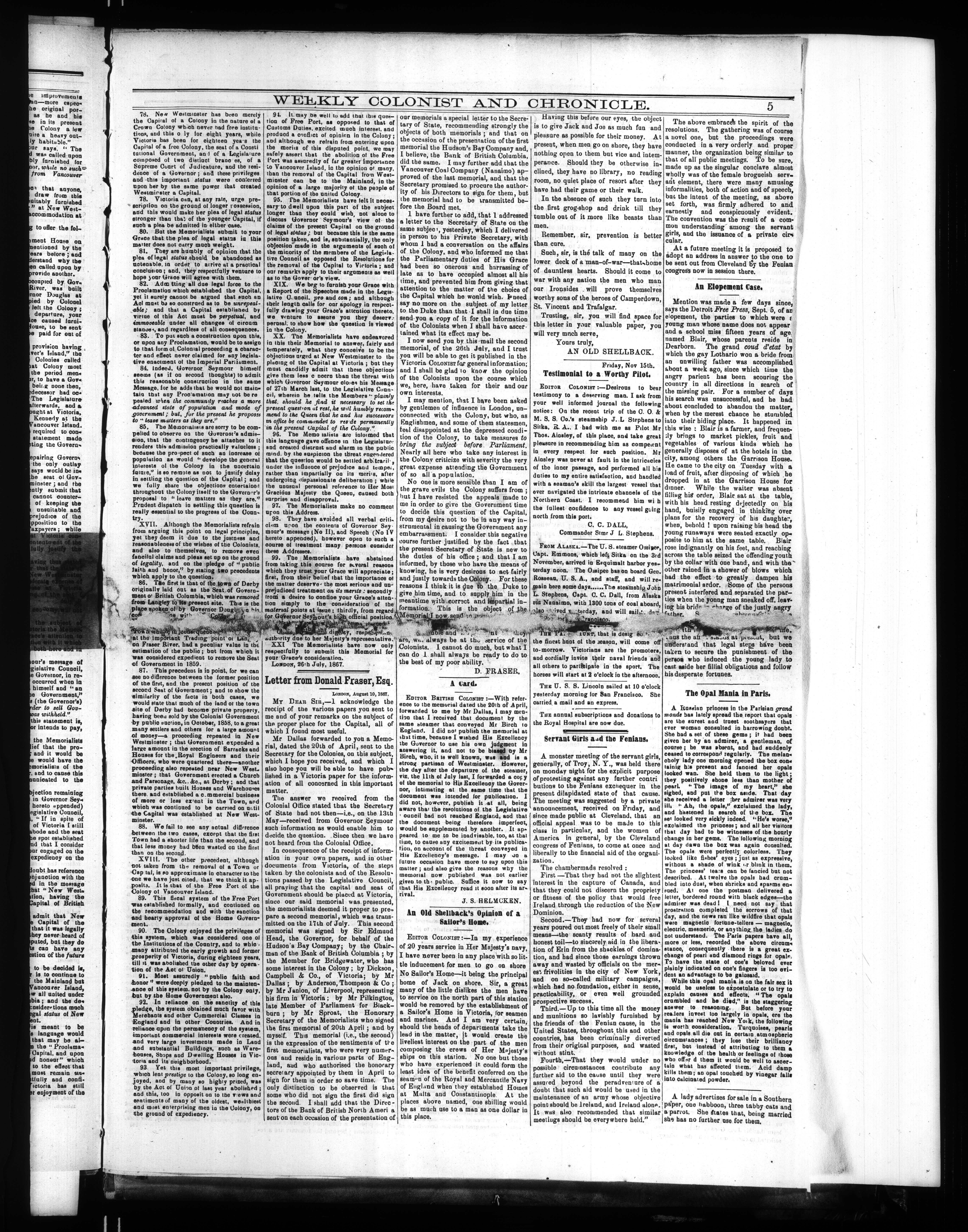 The weekly British colonist and Victoria chronicle. : Vol. 9, No. 2 (November 19, 1867)