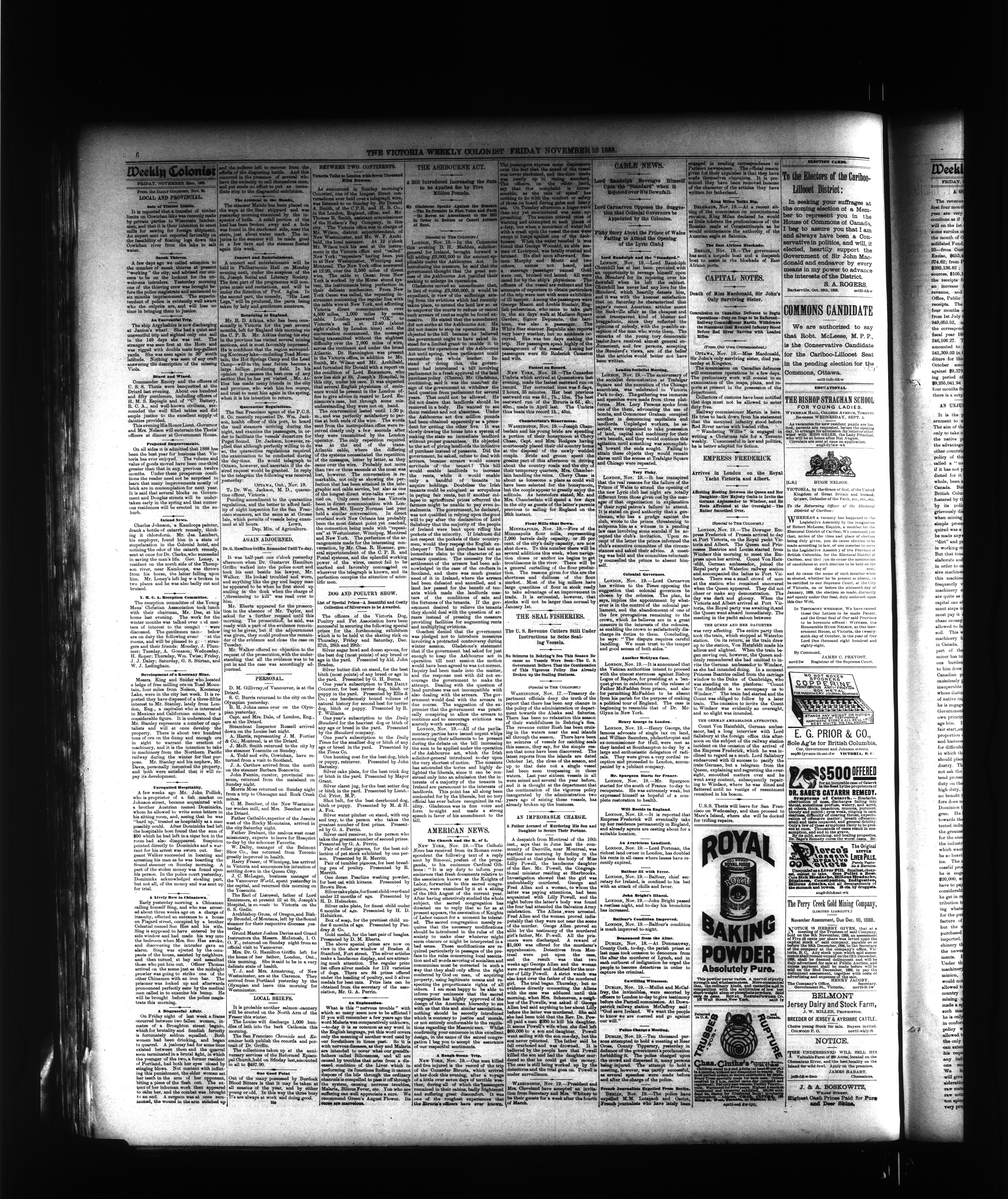 The Victoria weekly colonist. : Volume XXIX, No. 49 (November 23, 1888)
