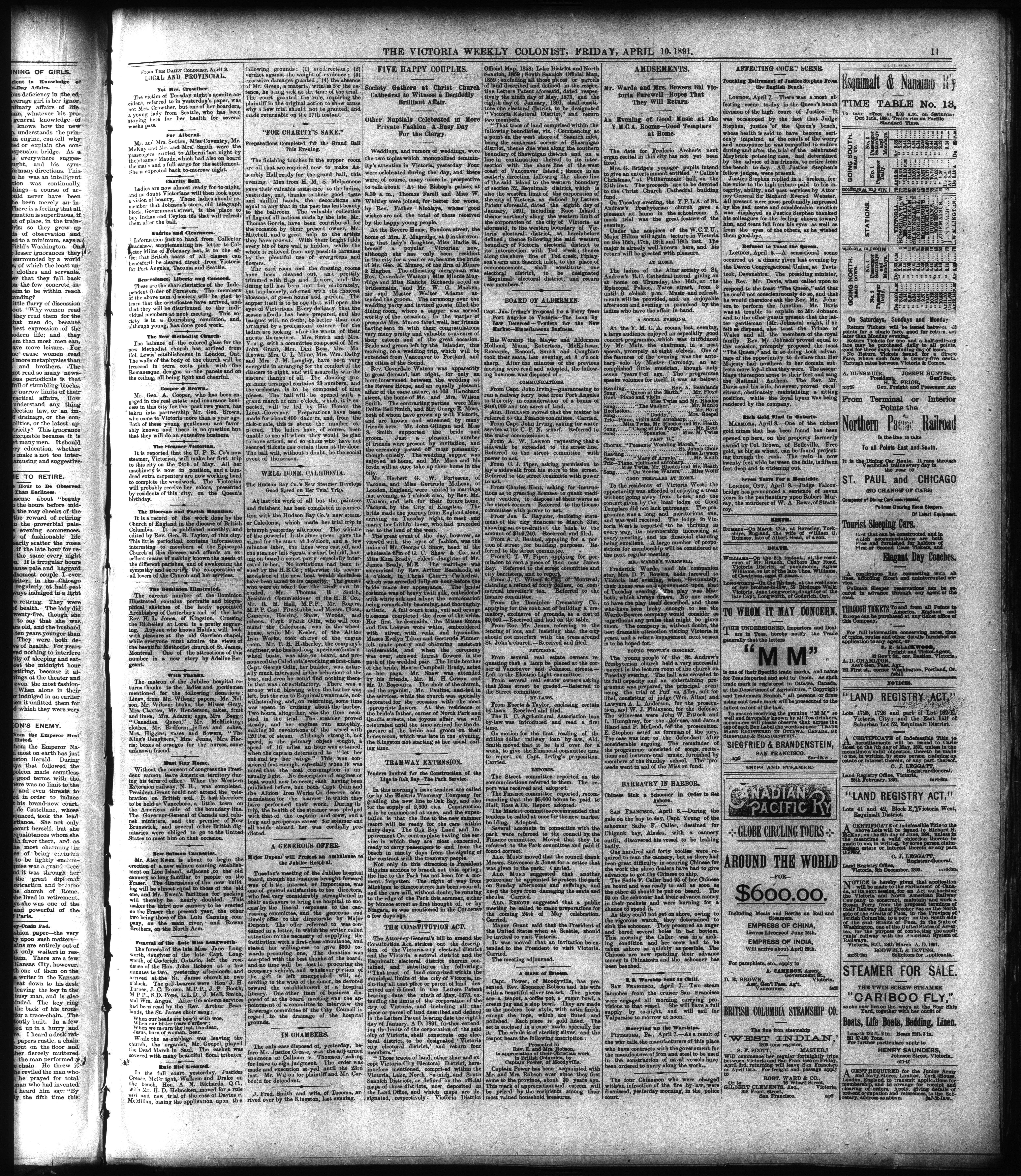 The Weekly colonist. : Volume XXXIII, No. 18 (April 10, 1891)