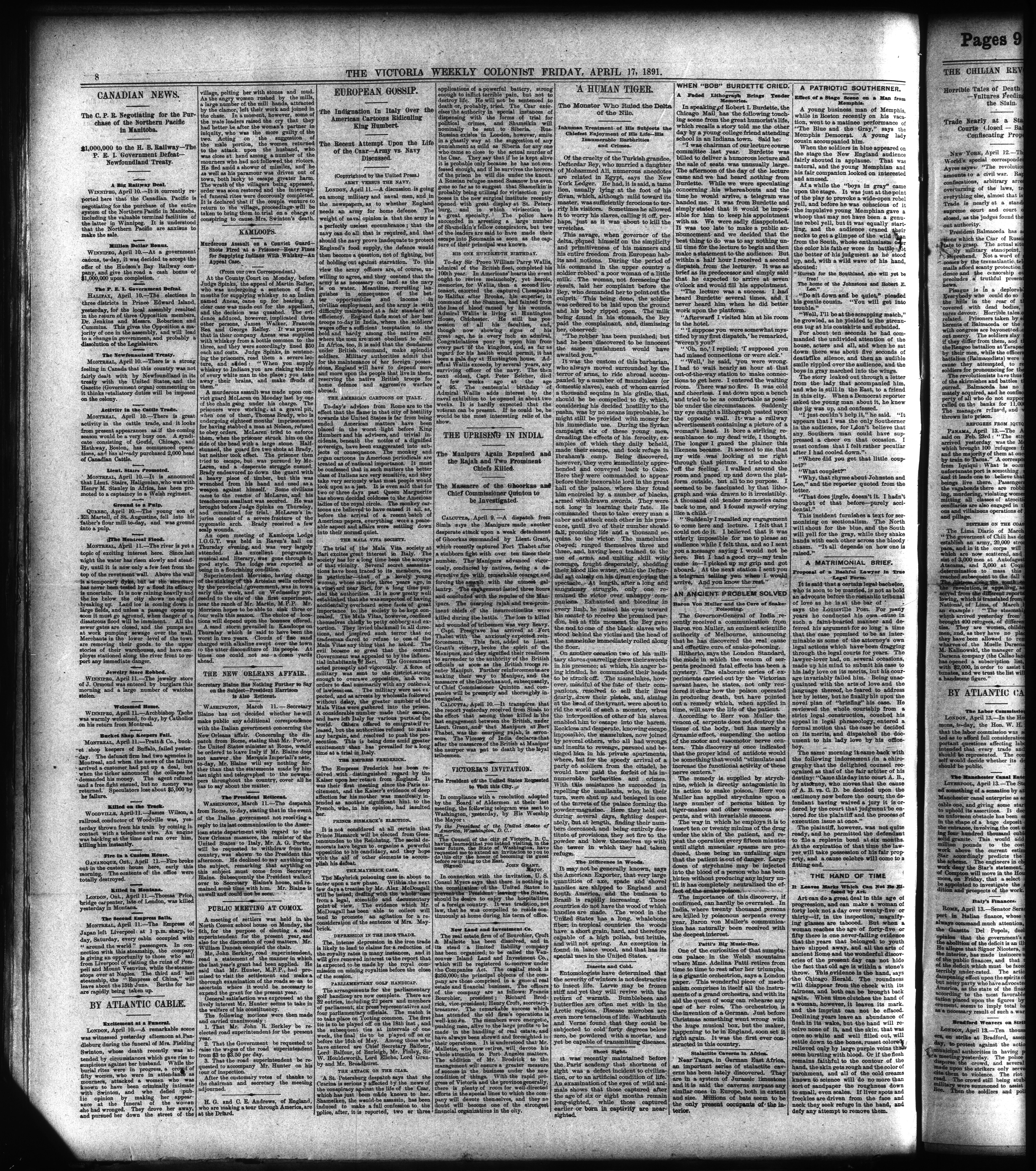 The Weekly colonist. : Volume XXXIII, No. 19 (April 17, 1891)