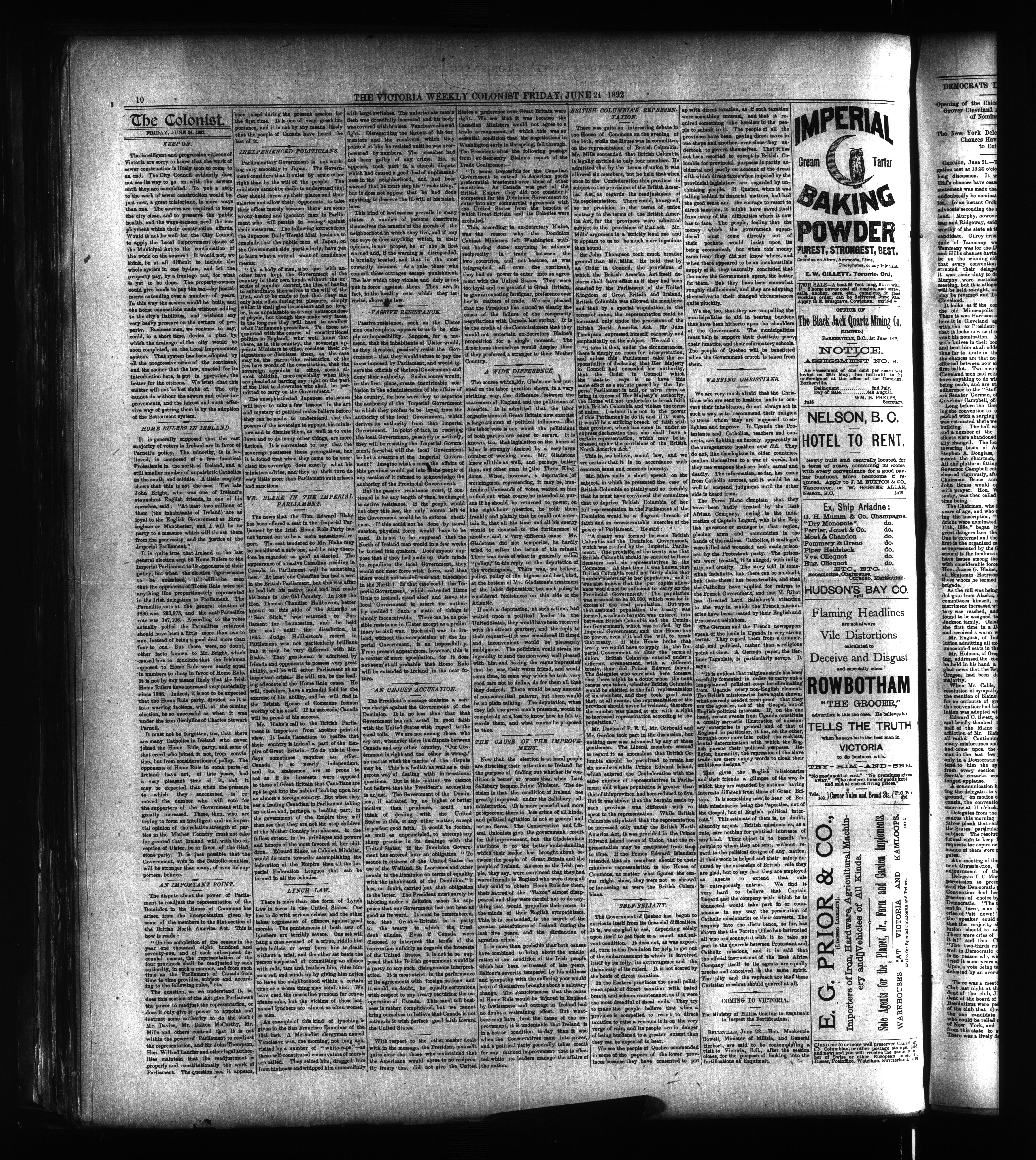 The Weekly colonist. : Volume XXXIV, No. 29 (June 24, 1892)