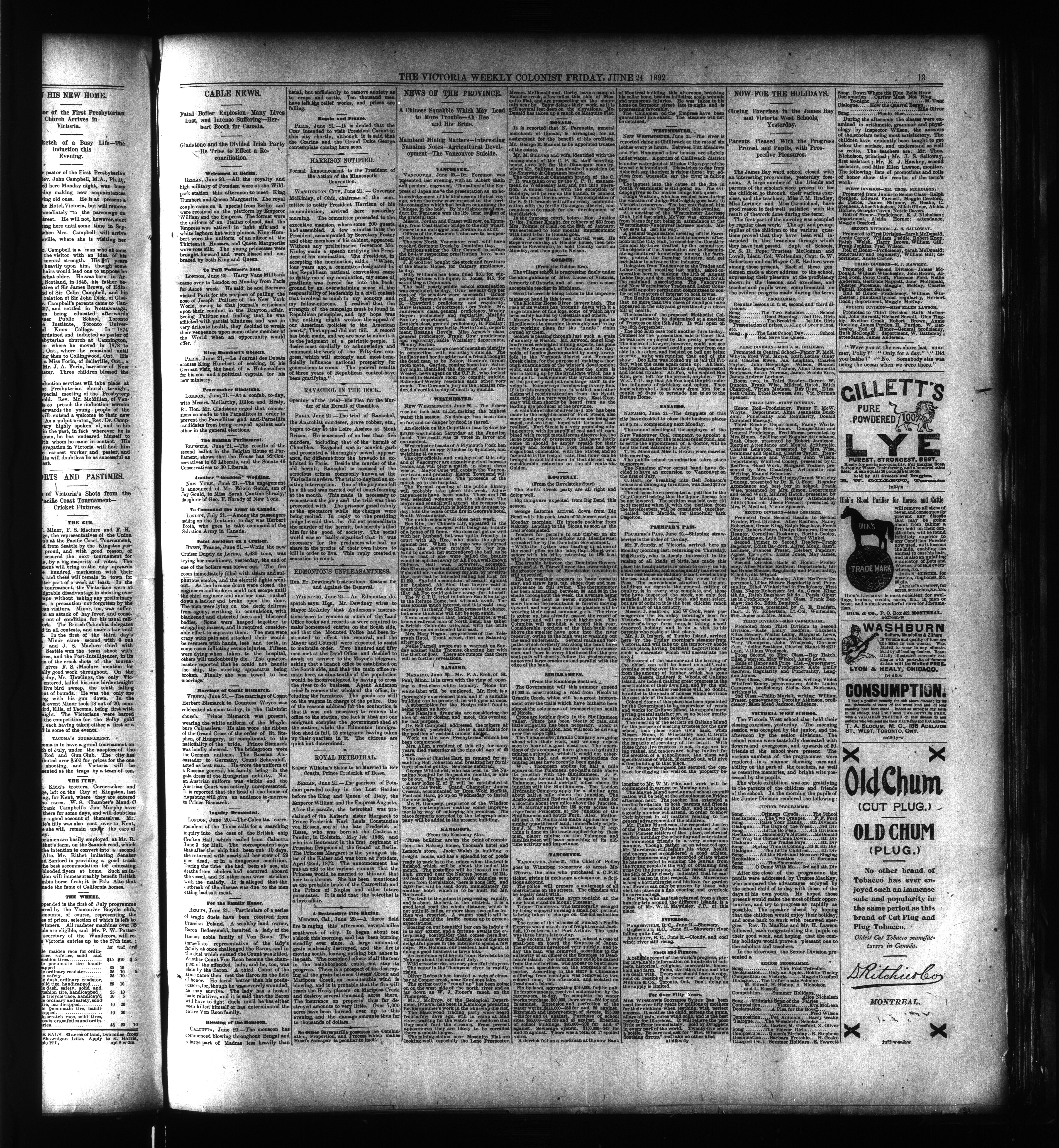 The Weekly colonist. : Volume XXXIV, No. 29 (June 24, 1892)