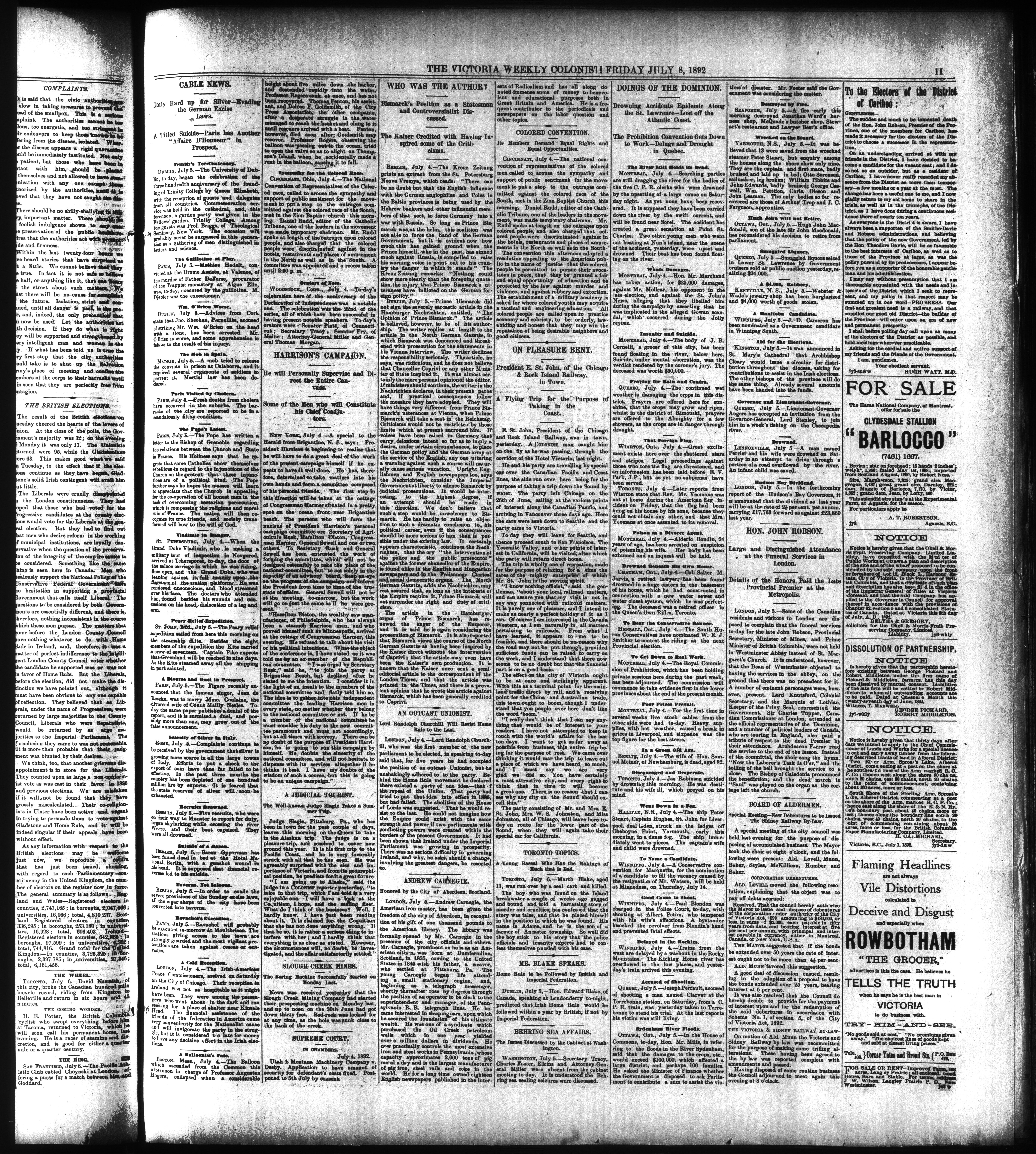 The Weekly colonist. : Volume XXXIV, No. 30 (July 8, 1892)
