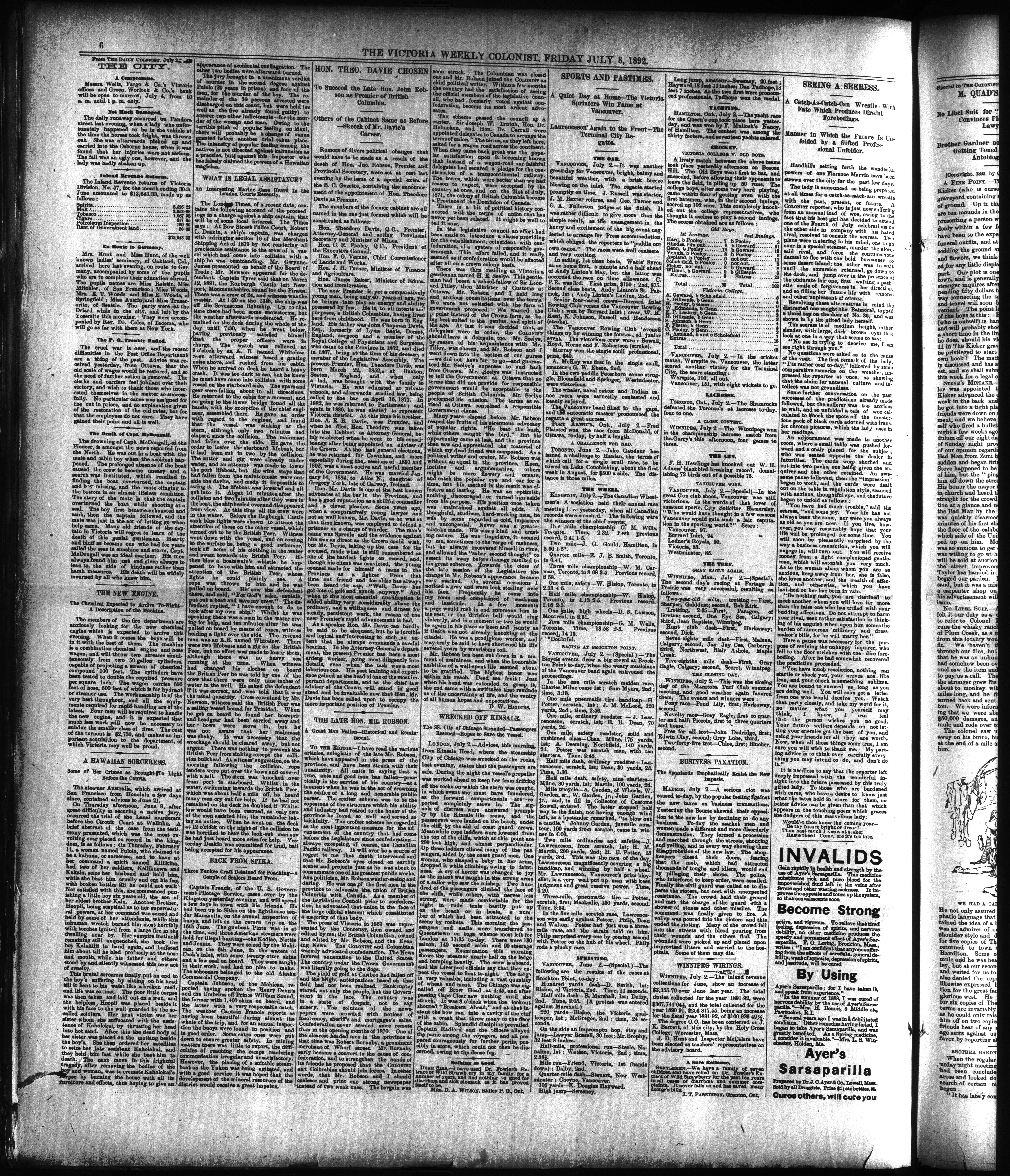 The Weekly colonist. : Volume XXXIV, No. 30 (July 8, 1892)