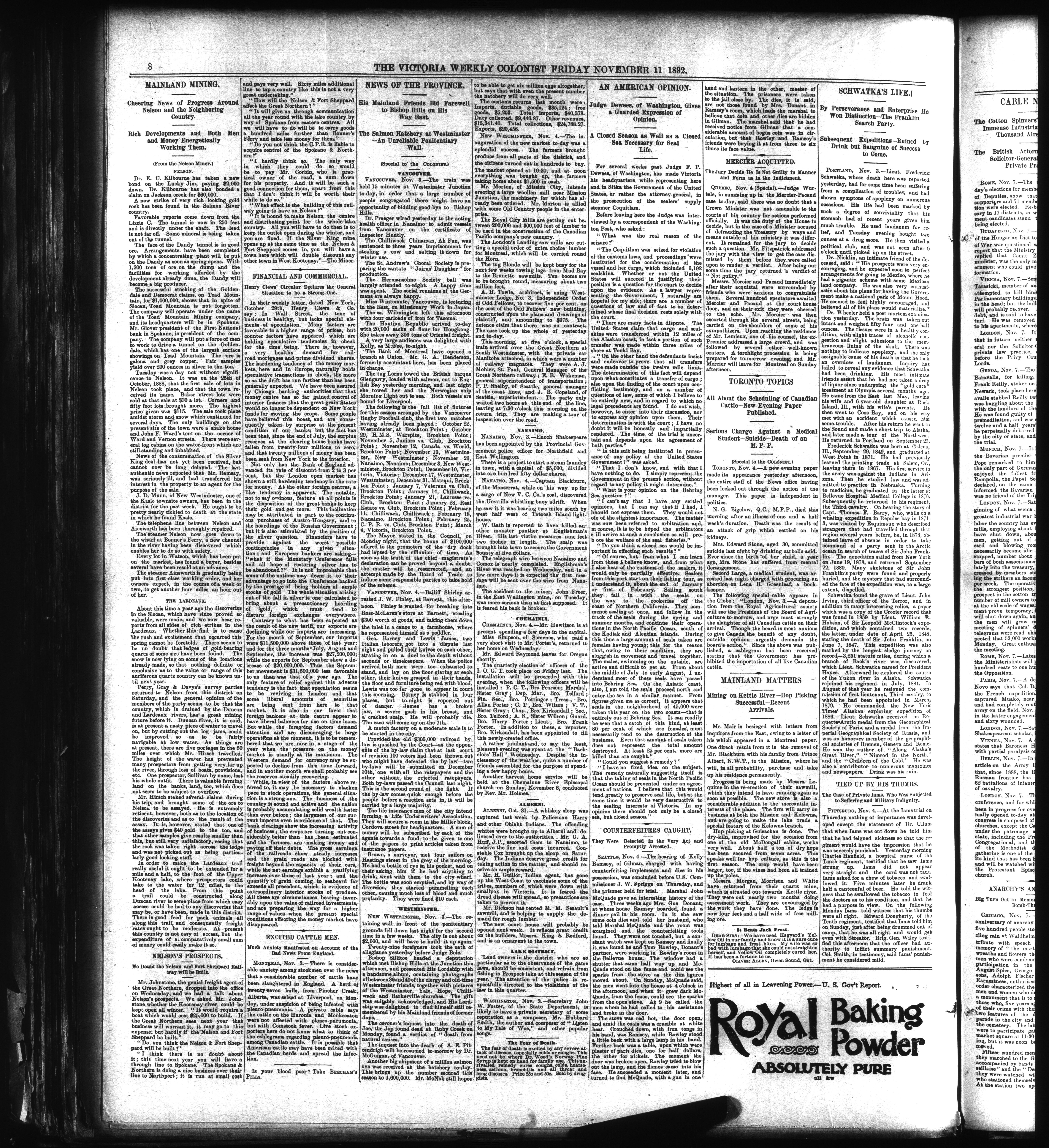 The Weekly colonist. : Volume XXXIV, No. 49 (November 11, 1892)