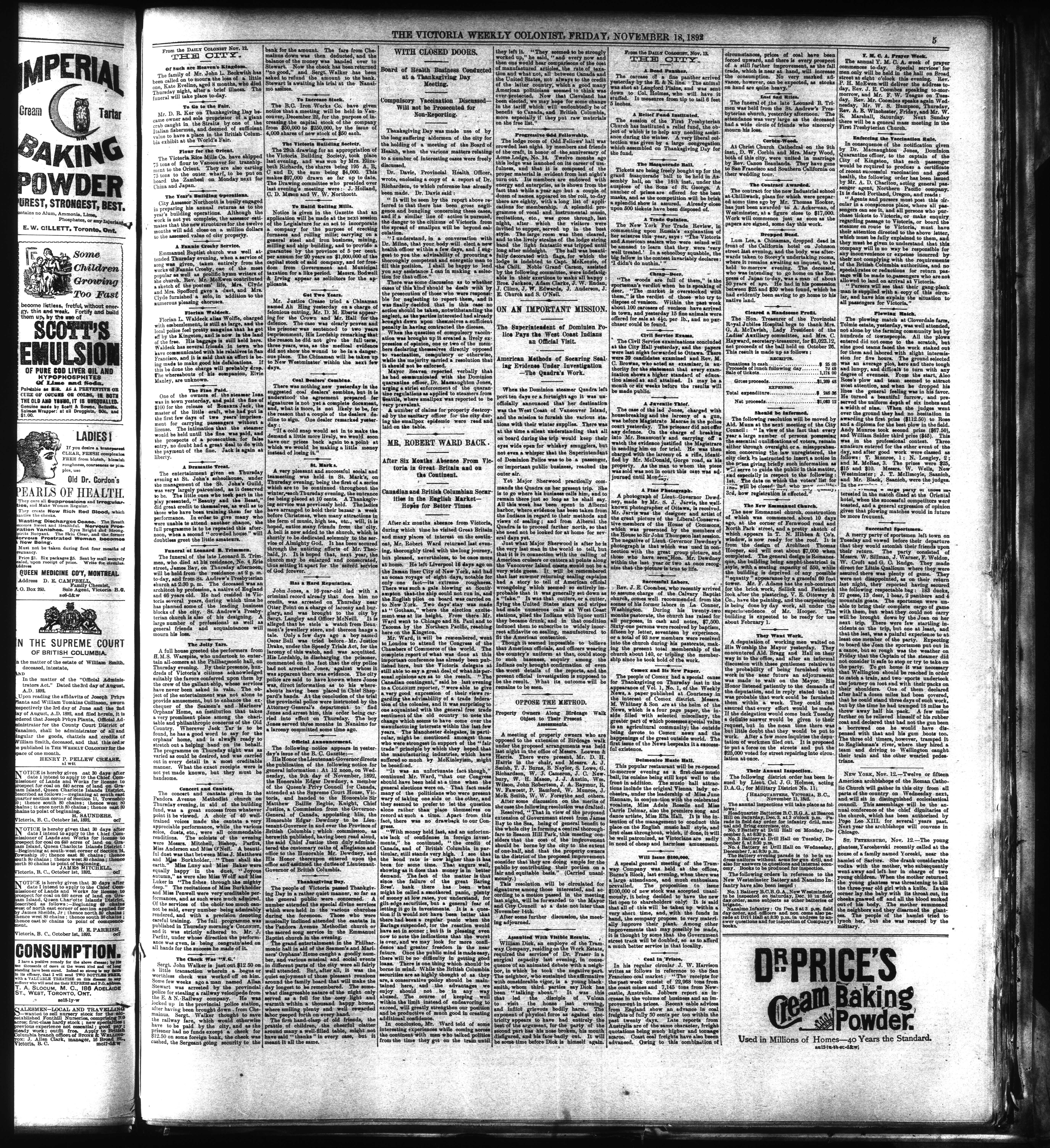 The Weekly colonist. : Volume XXXIV, No. 50 (November 18, 1892)