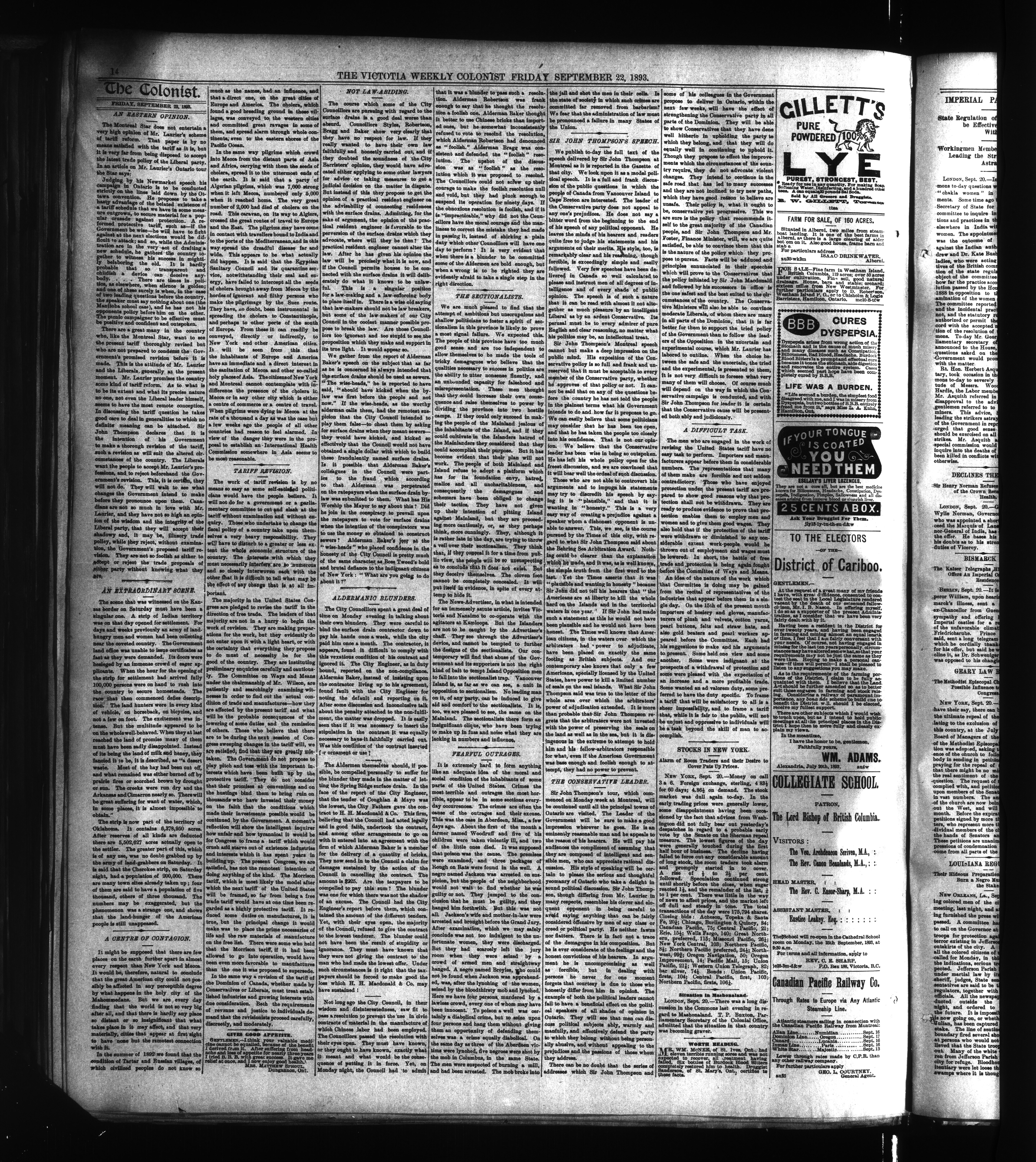 The Weekly colonist. : Volume XXXV, No. 40 (September 22, 1893)