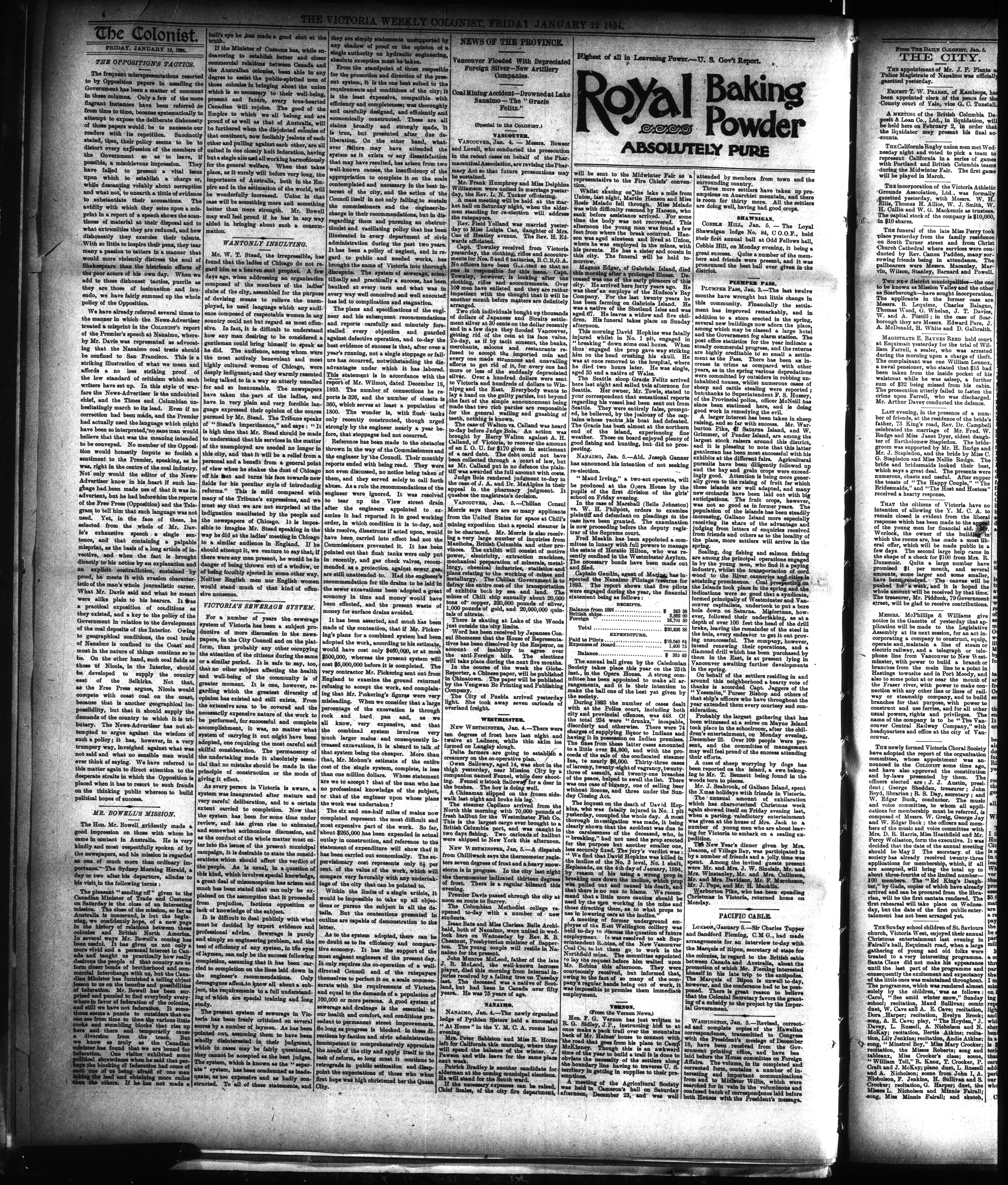 The Weekly colonist. : Volume XXXVI, No. 4 (January 12, 1894)
