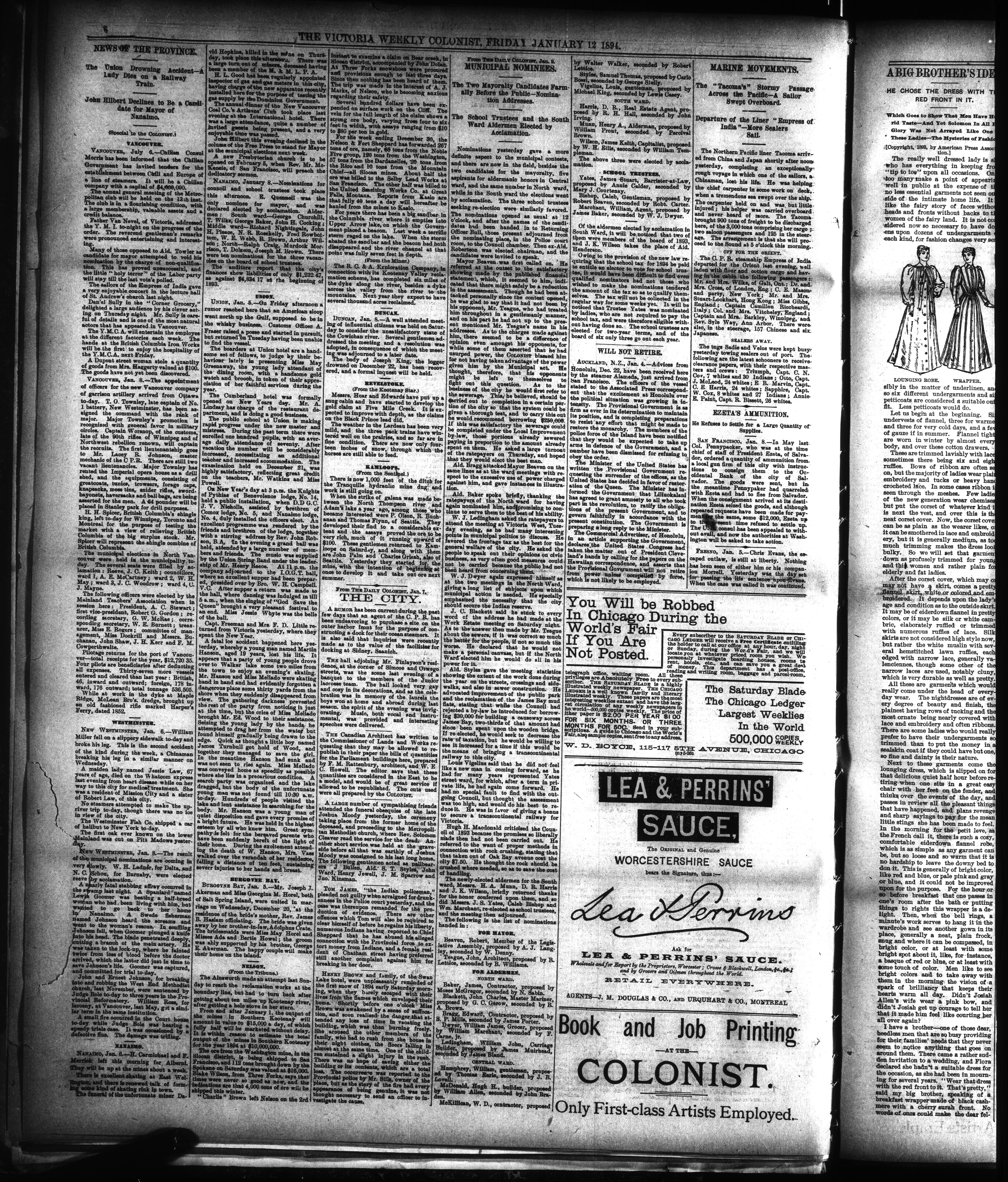 The Weekly colonist. : Volume XXXVI, No. 4 (January 12, 1894)